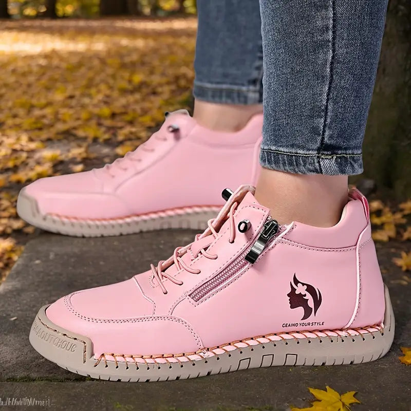 Women Retro Chunky Sneakers Yellow Casual Shoes with Side Zipper