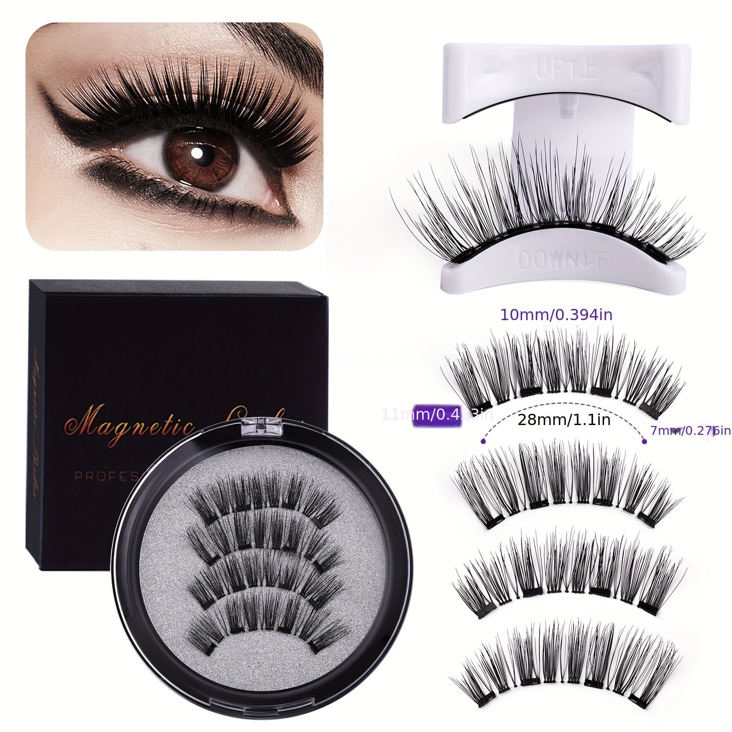 Women Reusable Magnetic False Eyelashes with Applicator Set of 4