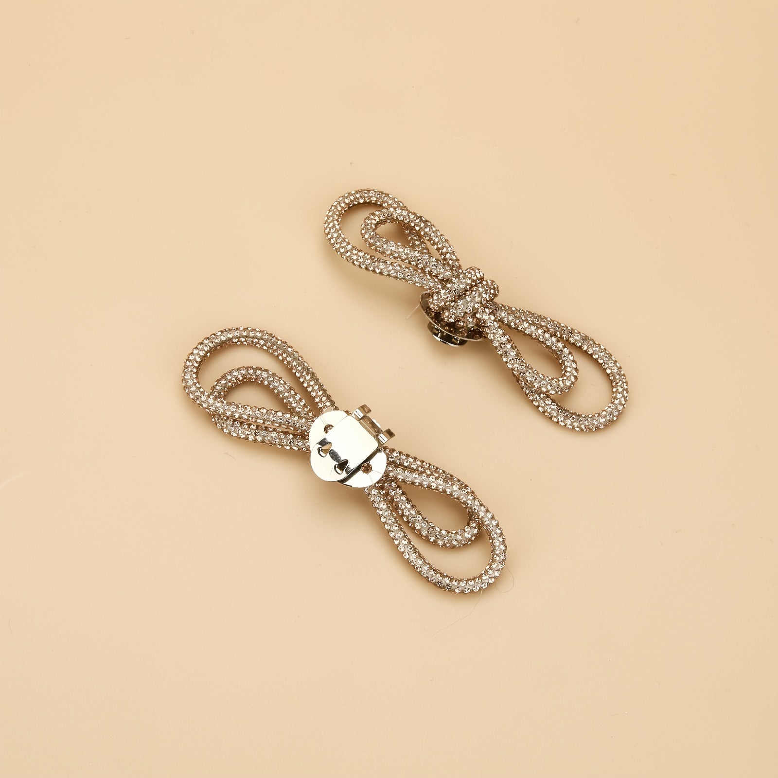 Women Rhinestone Bow Shoe Clips 2-Pack Detachable Braided Style Accessories