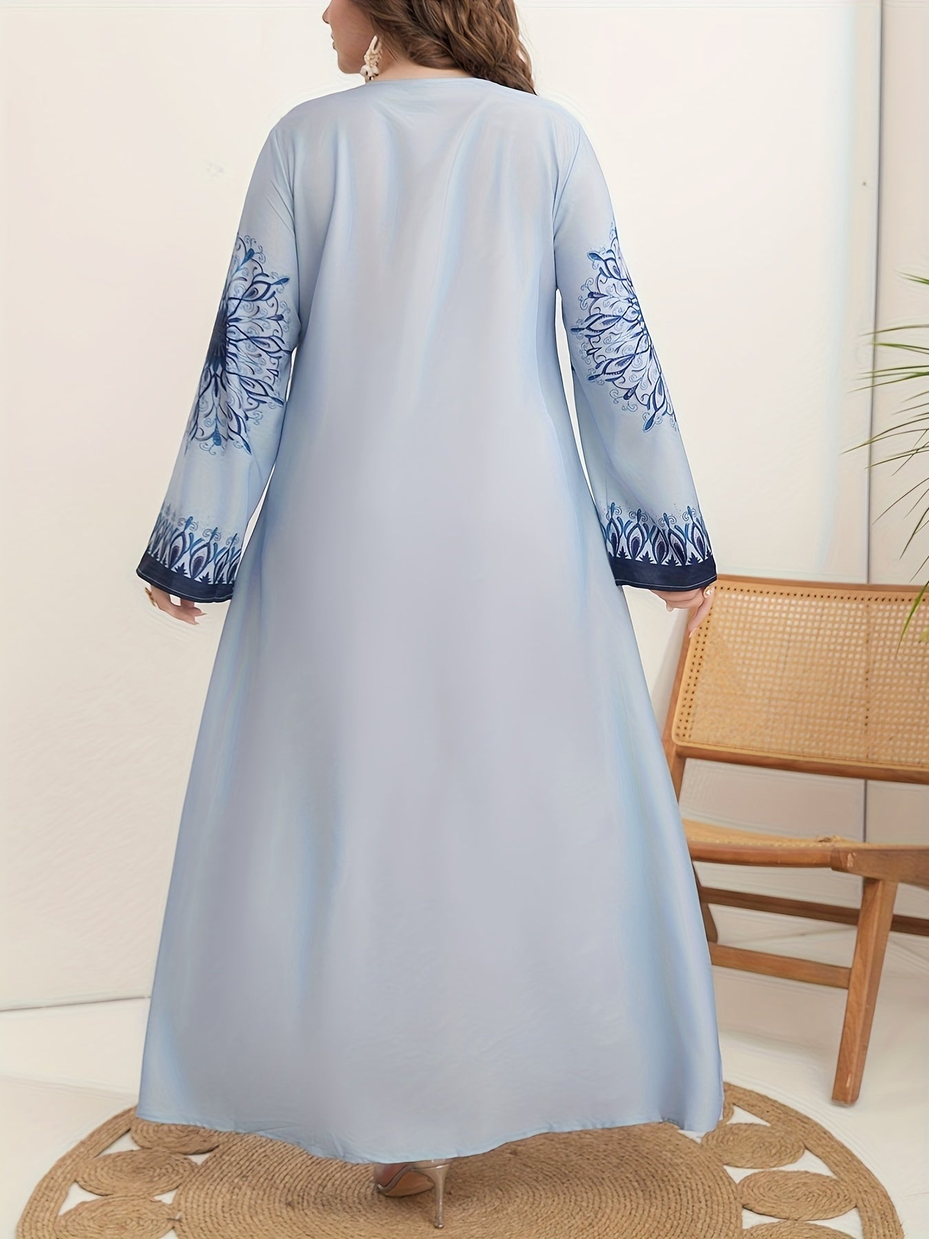 Women's Blue Floral Print Loose Fit Long Sleeve Dress All-Season Casual