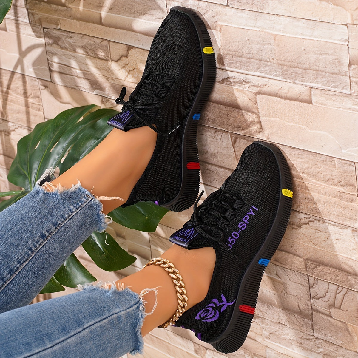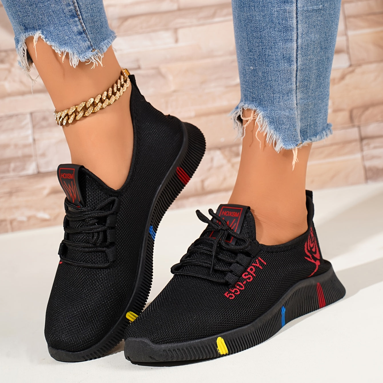 Women's Breathable Knit Sneakers Casual Lace-Up Outdoor Low Top Sport Shoes