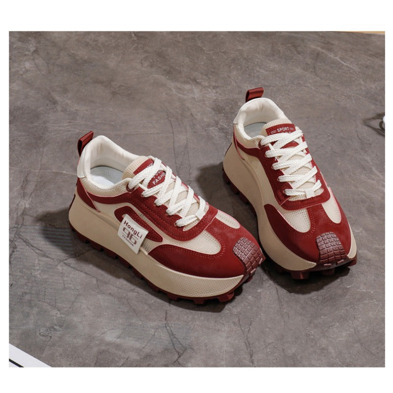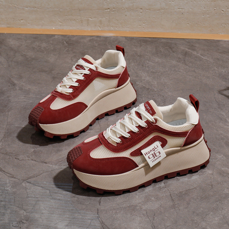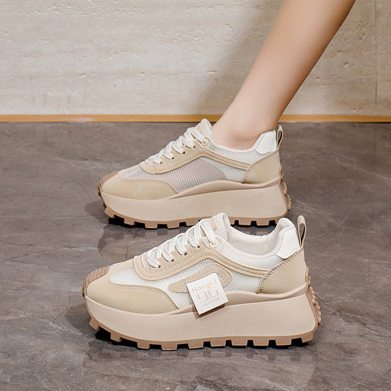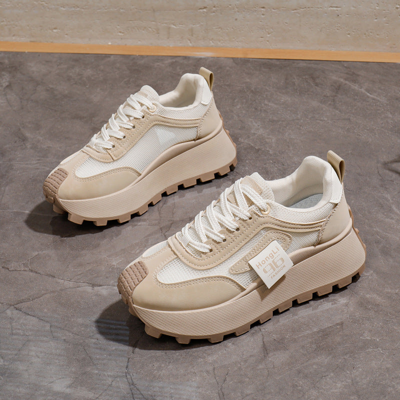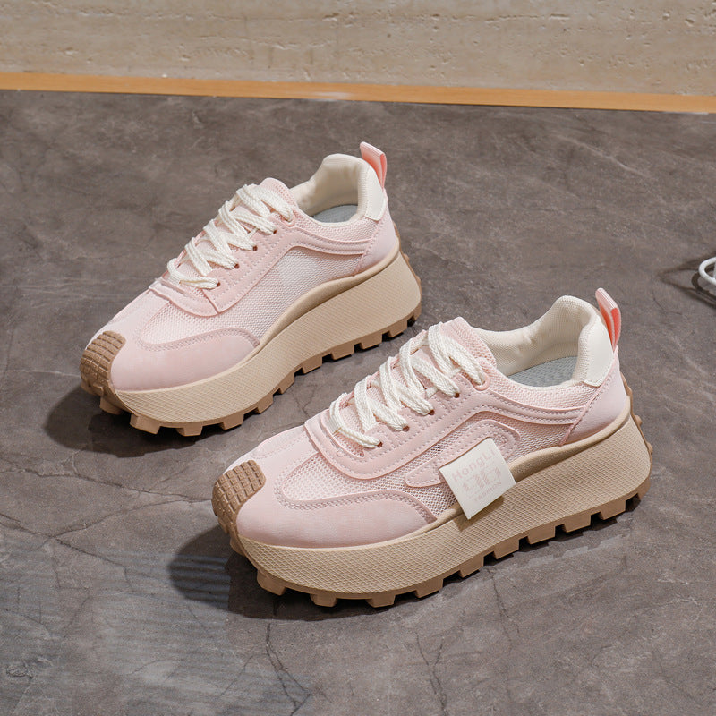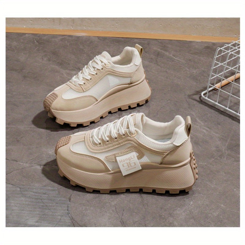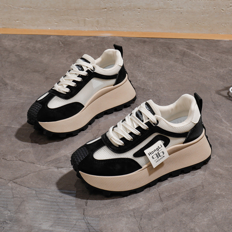 Women's Breathable Lightweight Chunky Sneakers Casual Low-Top Shoes Black White