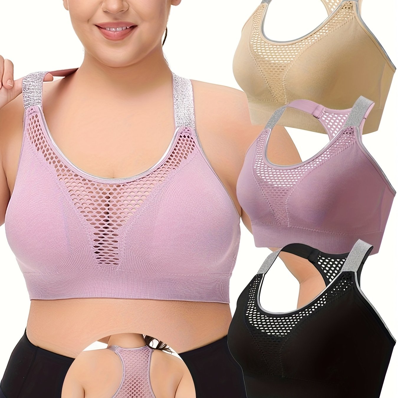 Women's Breathable Seamless Hollow Grid Sports Bra Adjustable Plus Size