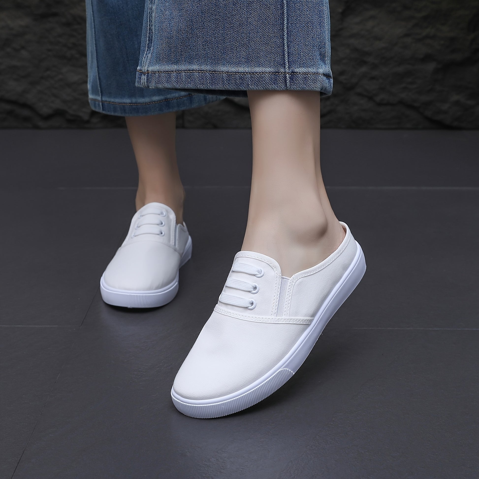 Women's Casual Slip-On Sneakers Breathable Fabric Black White Lightweight