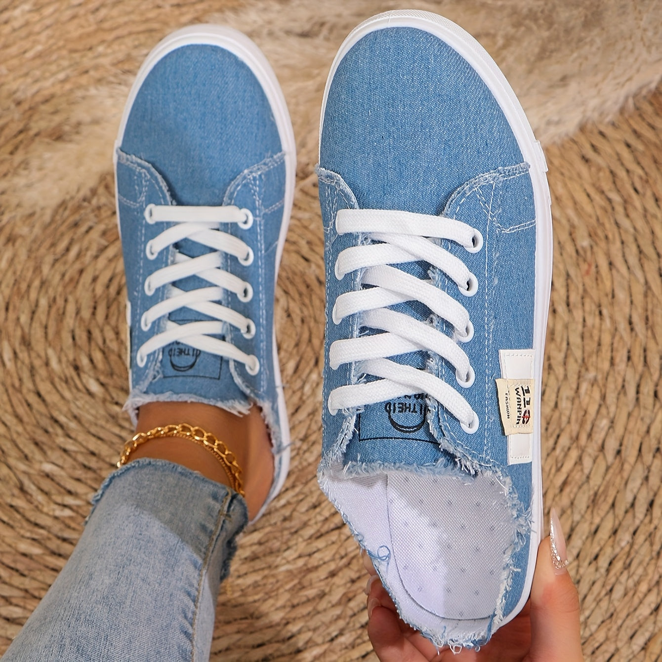 Women's Casual White Fabric Sneakers with Soft Sole and Round Toe