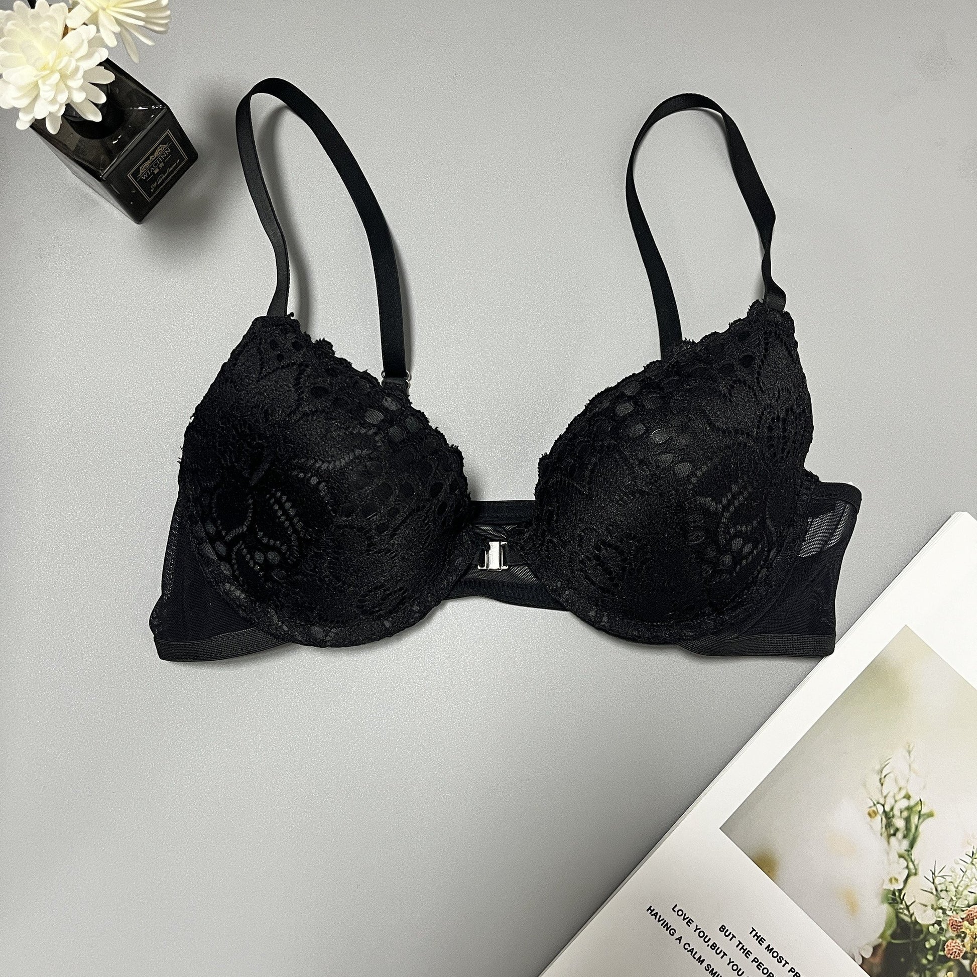 Women's Lace Push Up Bra with Removable Pads High Support Nylon Knit Solid Color