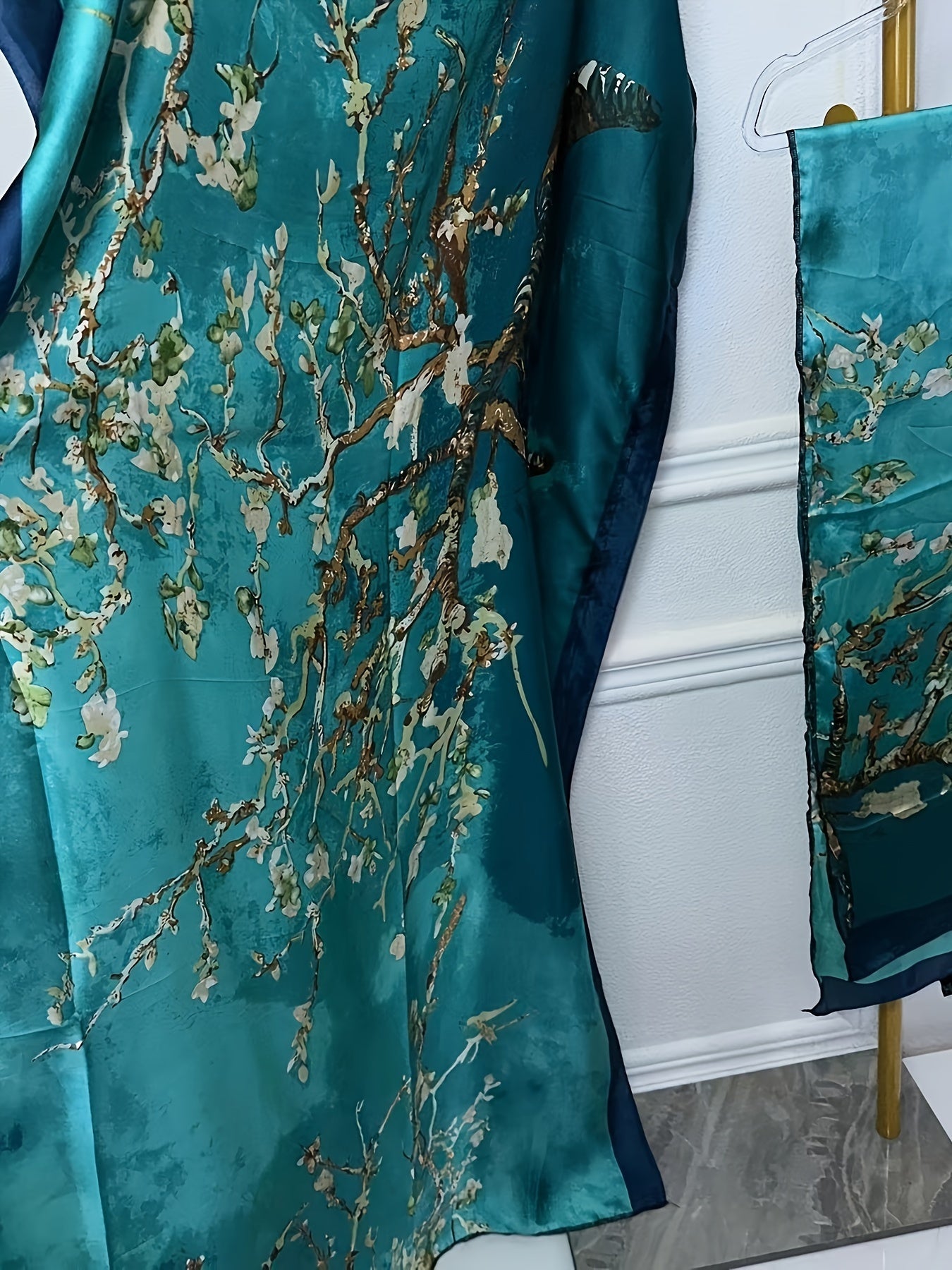 Women's Floral Print Maxi Dress with Batwing Sleeves for Spring Summer