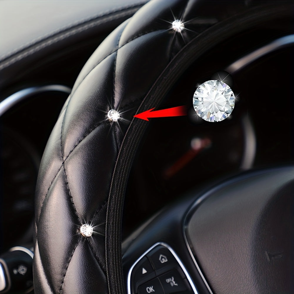 Women's Glittering Artificial Diamond PU Leather Steering Wheel Cover Soft Comfort