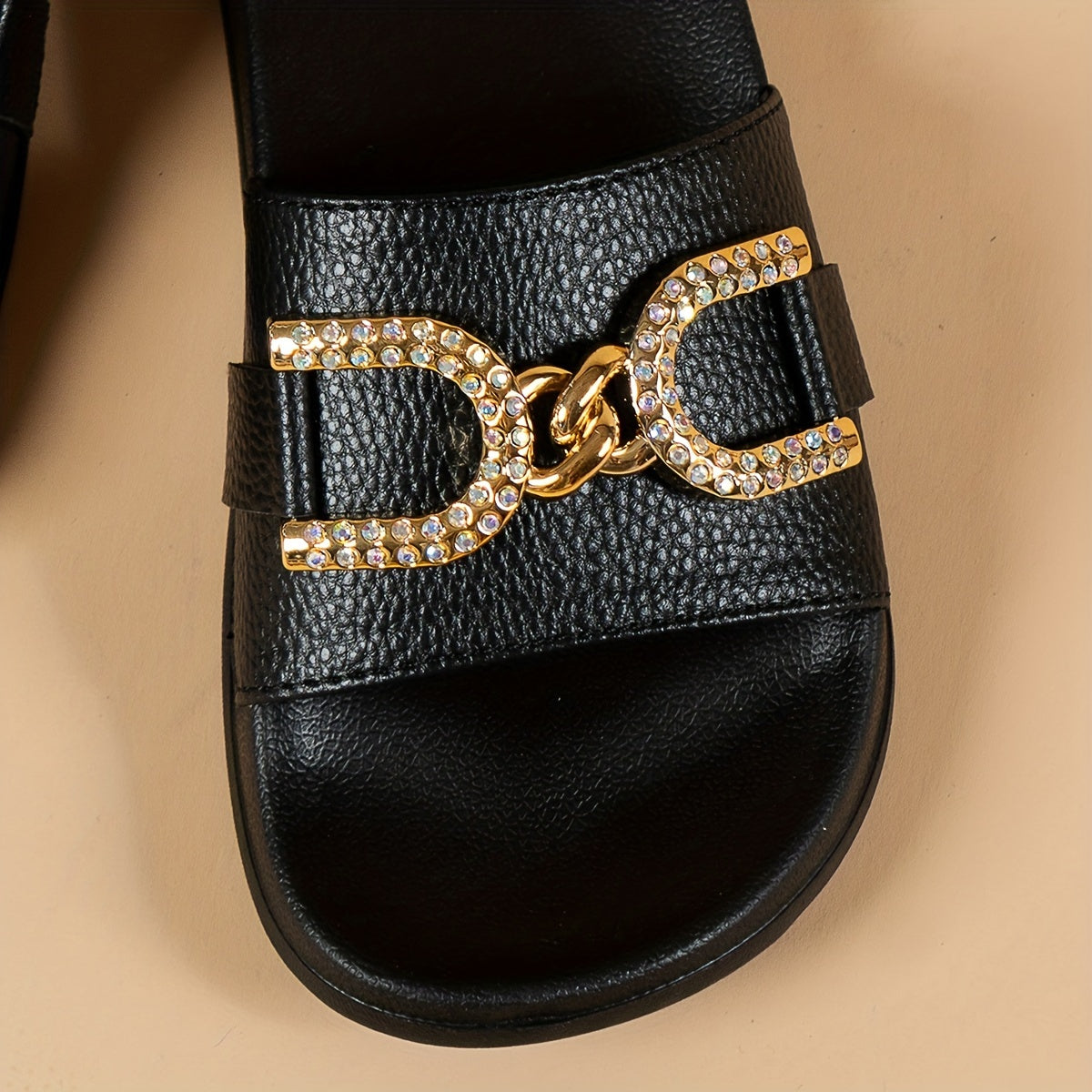 Women's Glittery Rhinestone Flat Slippers Open Toe Casual Memory Foam