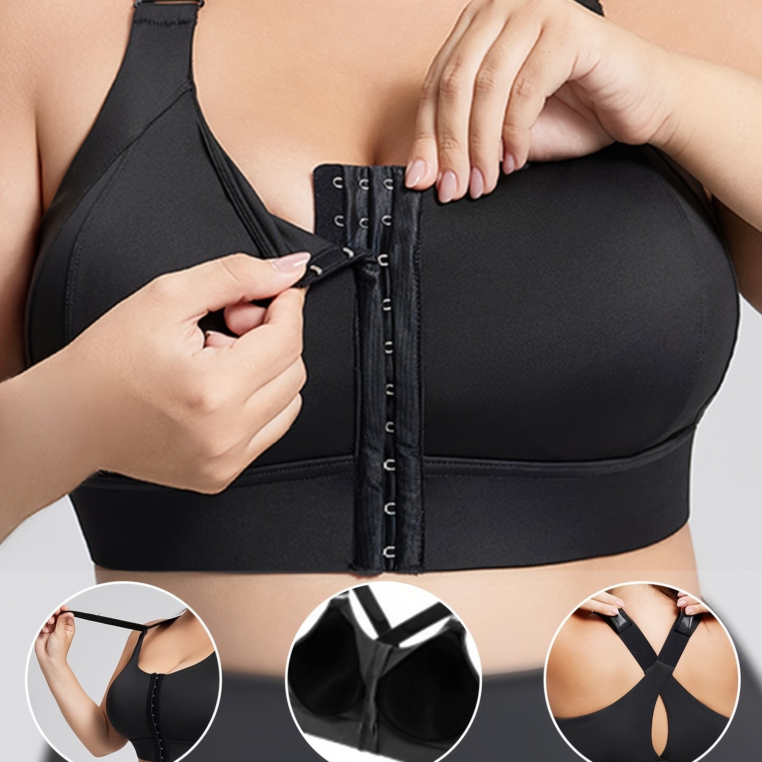 Women's High-Impact Sports Bra with Front Zipper Black for Yoga Running