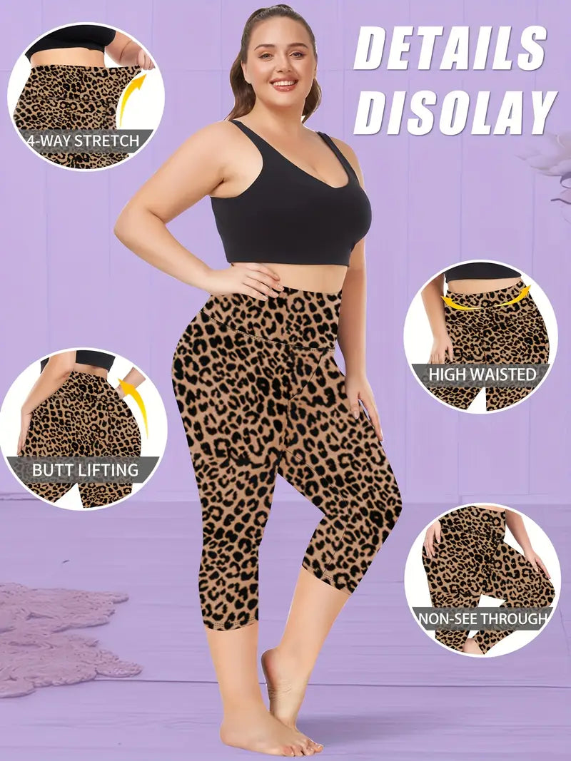 Women's Leopard Print Capri Leggings Plus Size Stretchy Comfortable | 3/4 Length