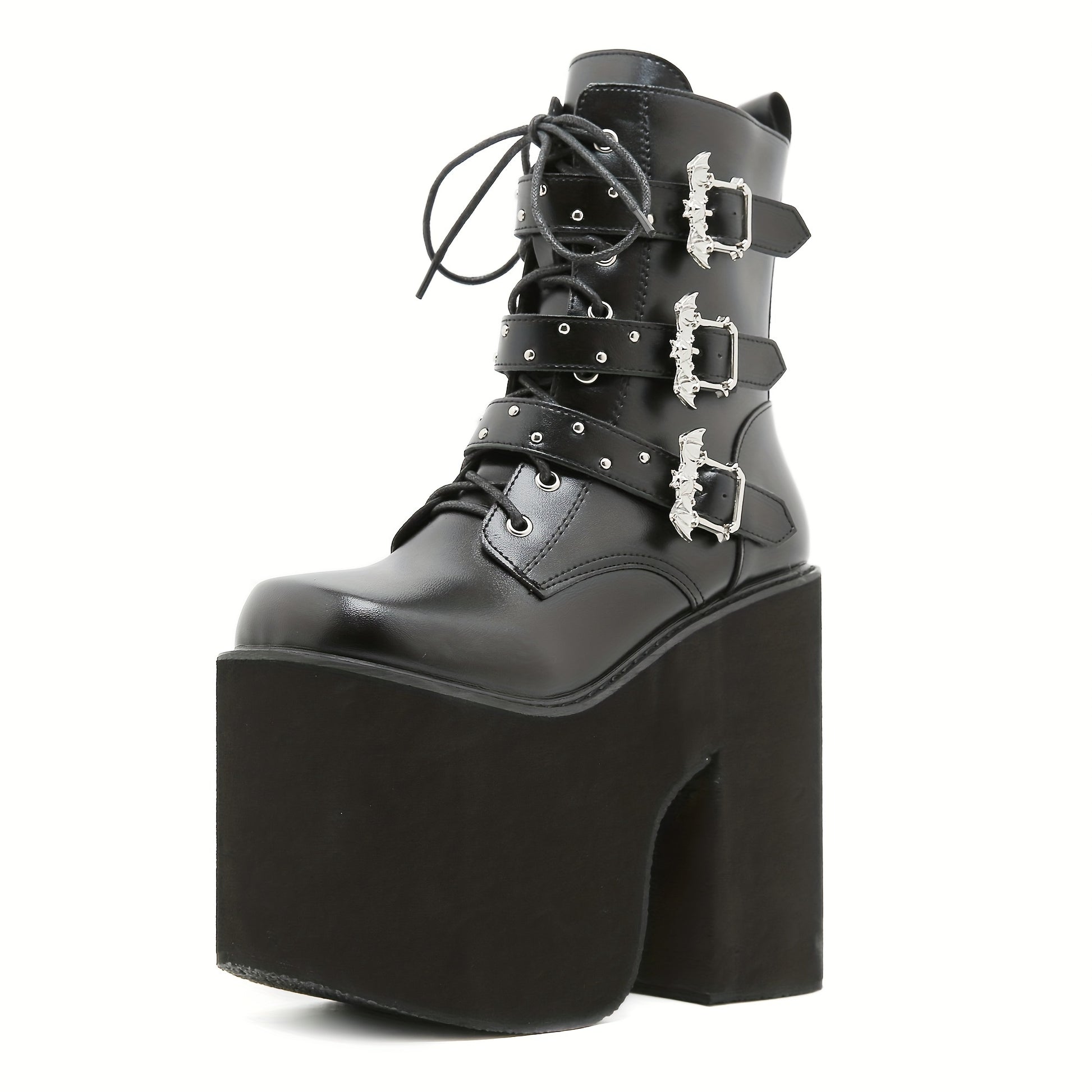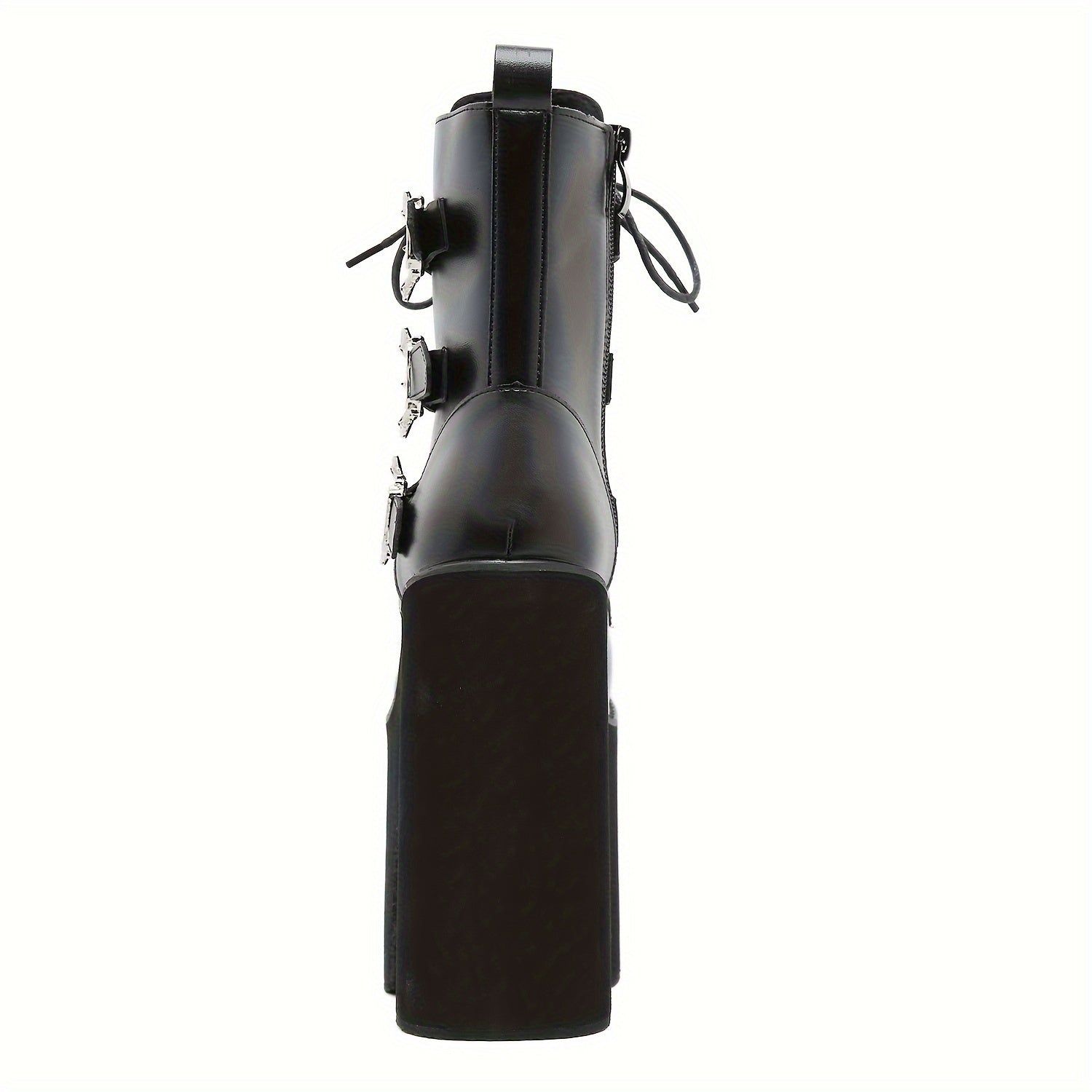 Women's Mid-Calf Platform Boots Punk Style Solid Color Buckle Zipper Lace-Up