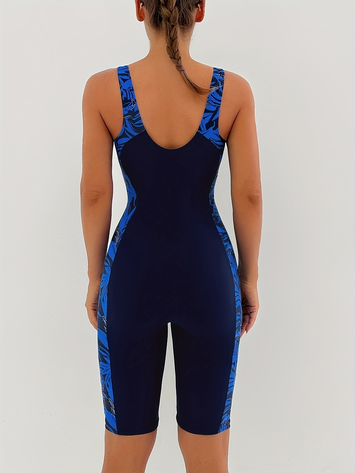 Women's High Stretch Knit Polyester One-Piece Swimsuit with Scoop Neck and Random Print