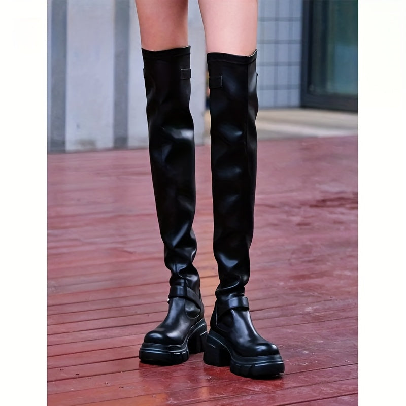 Women's Over-the-Knee Boots With Buckle Thick Sole Chunky Heel
