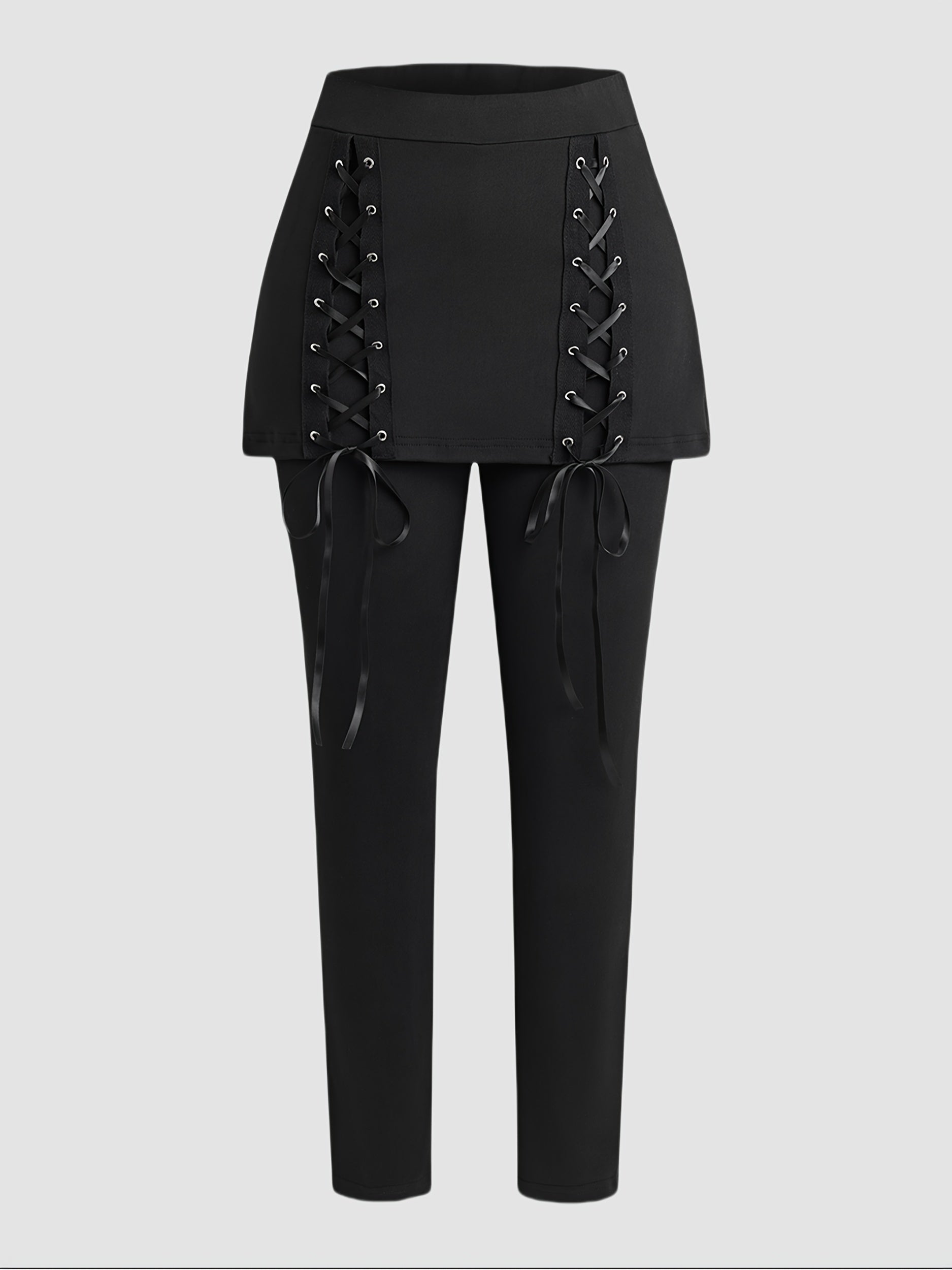 Women’s Plus Size 2-in-1 Skirt and Tights Knit Leggings Solid Color