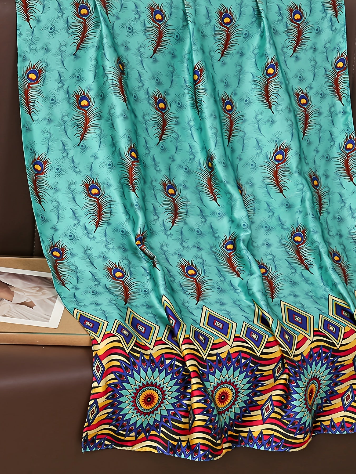 Women's Plus Size Bohemian Long Shirt Dress with Batwing Sleeves and Geometric Print