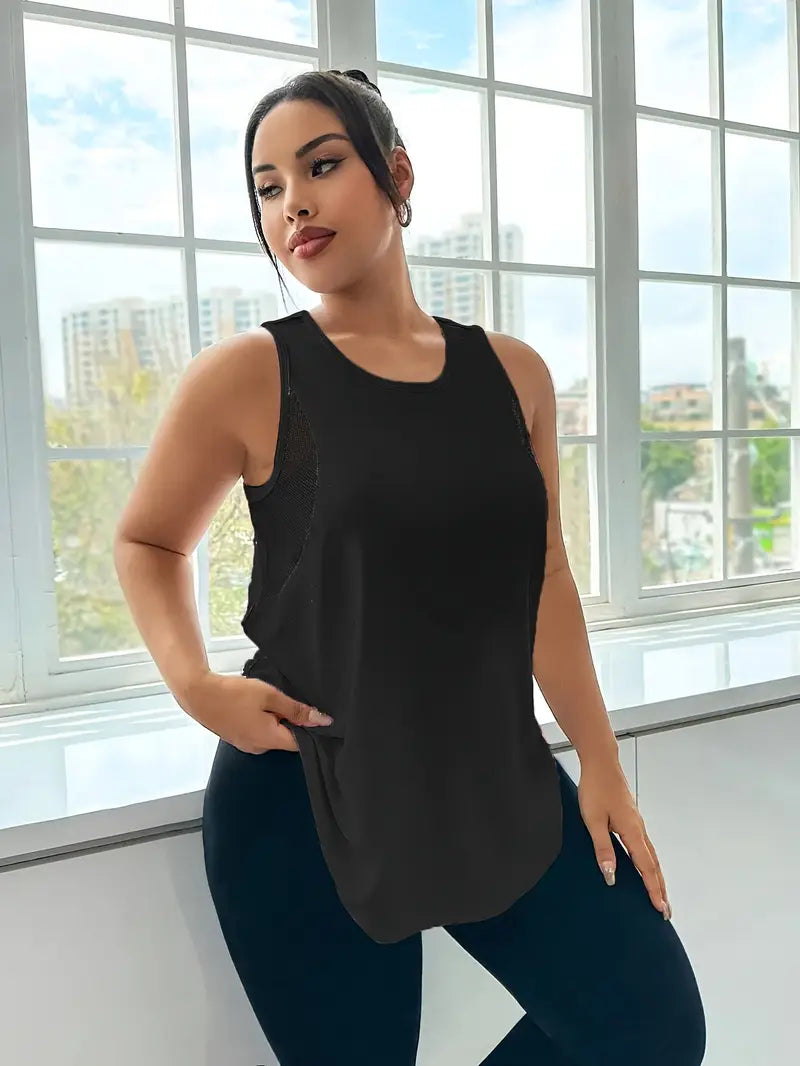 Women's Plus Size Breathable Mesh Sports Vest Sleeveless Activewear Top