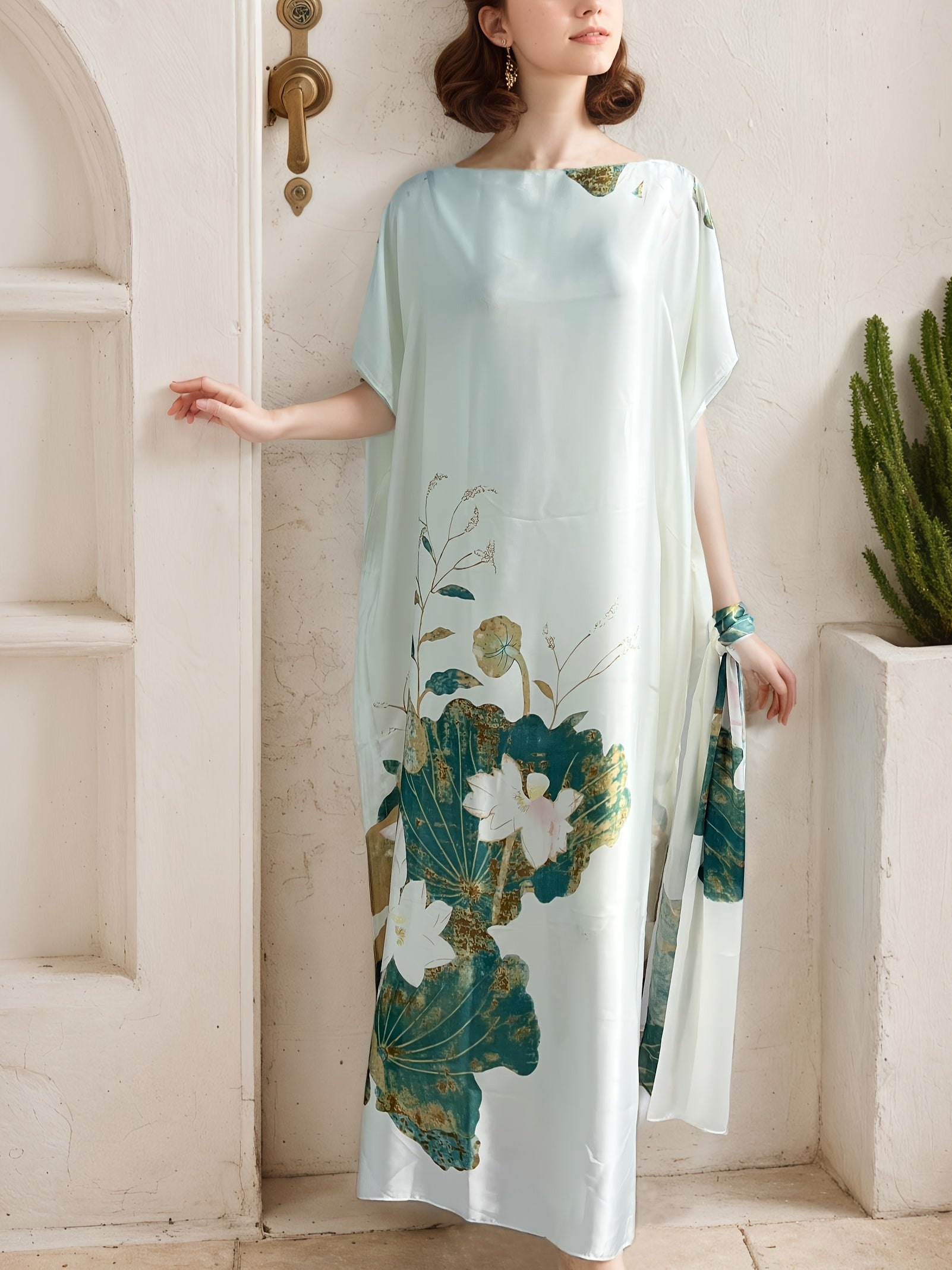 Women's Plus Size Floral Print Maxi Kaftan Dress with Scarf, Loose Fit