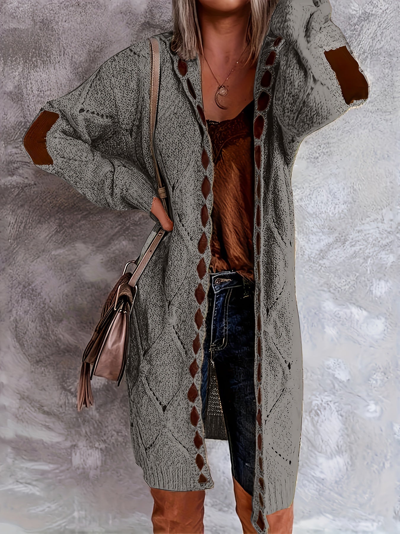 Women's Plus Size Hooded Cardigan Sweater with Faux Buttons and Raglan Sleeves