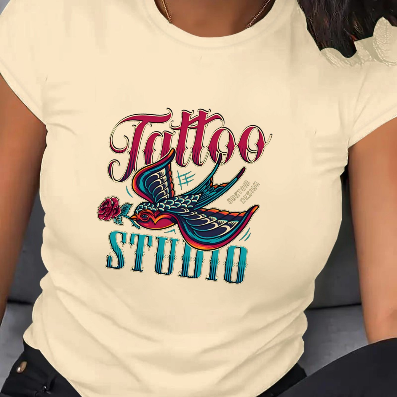 Women's Plus Size Tattoo Studio Graphic Tee Crew Neck Short Sleeve T-Shirt