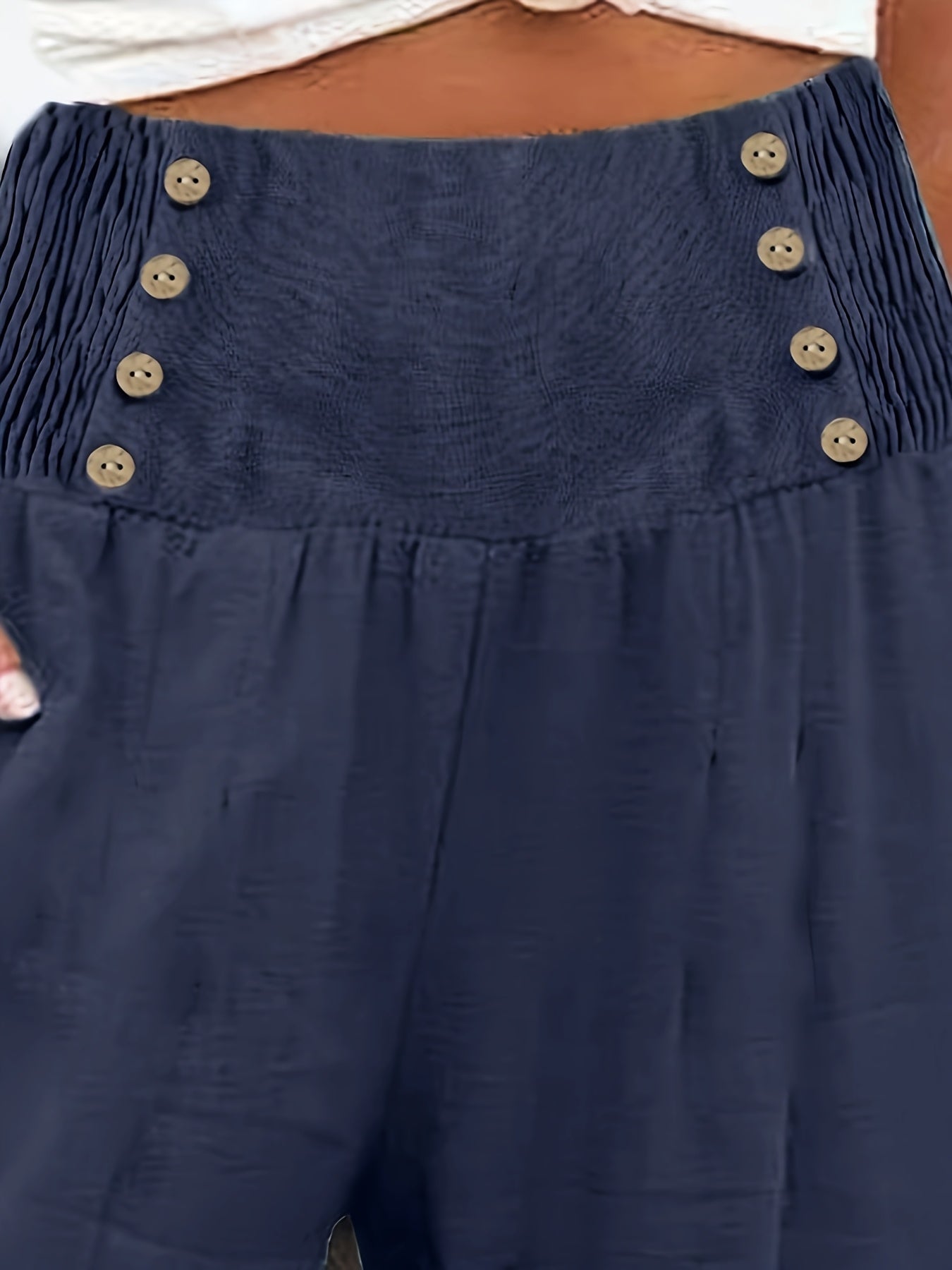 Women's Plus Size Wide Leg Pants with Drawstring Waist Solid Color Casual Beach