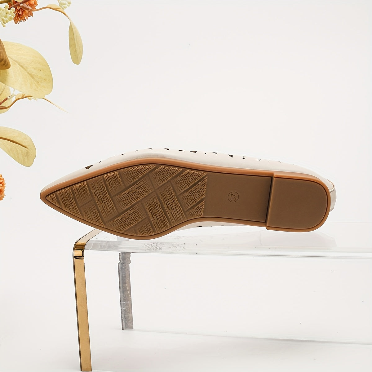 Women's Pointed-Toe Slip-On Flats Breathable Cut-Out Beige Synthetic Shoes
