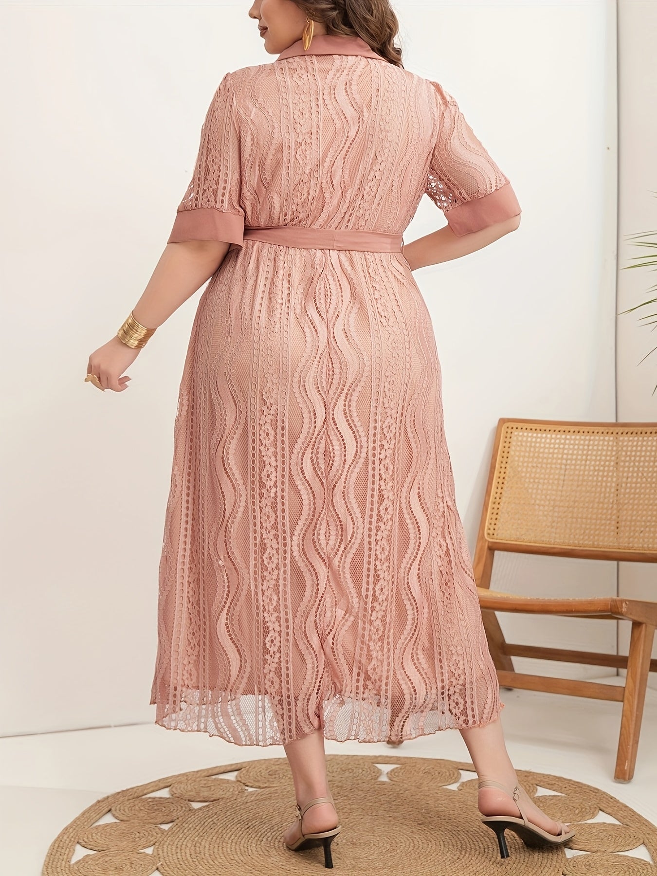 Women's Polyester V-Neck Tunic Dress Belted Solid Color Plus Size