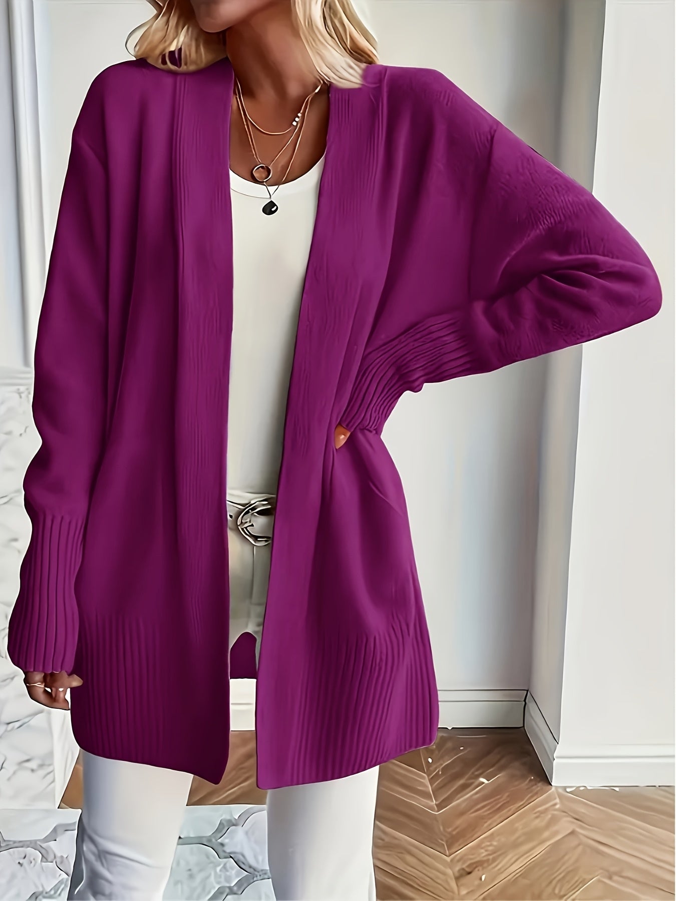 Women's Purple Knit Cardigan Open Front Sweater Long Sleeves