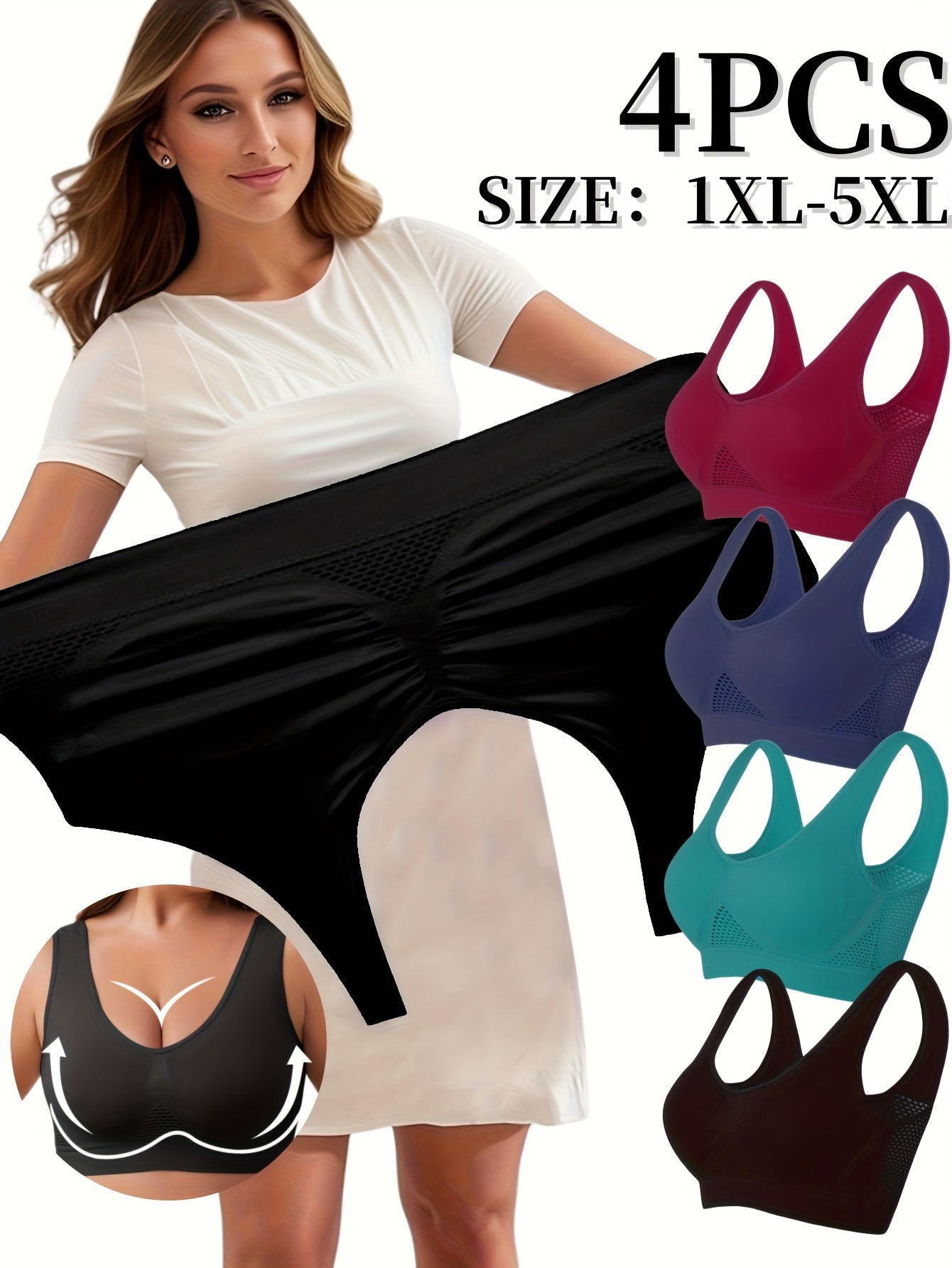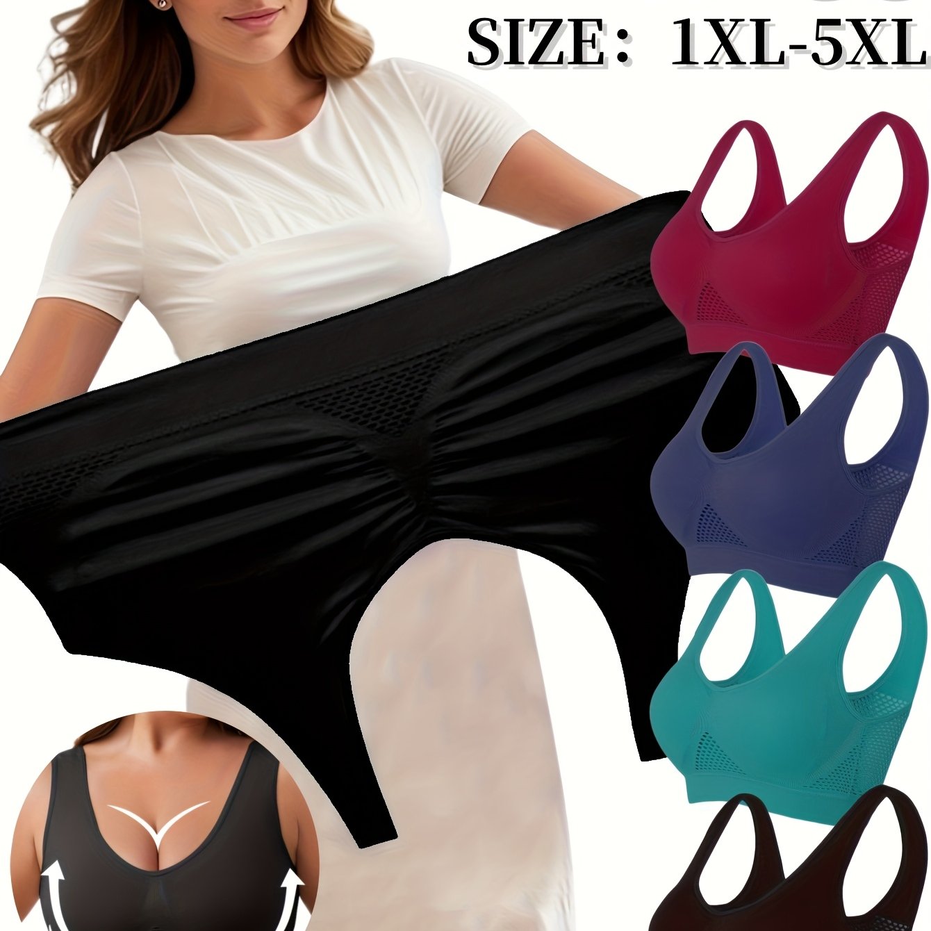 Women's Seamless Breathable Mesh Sports Bras 1XL-5XL Black Beige Blue