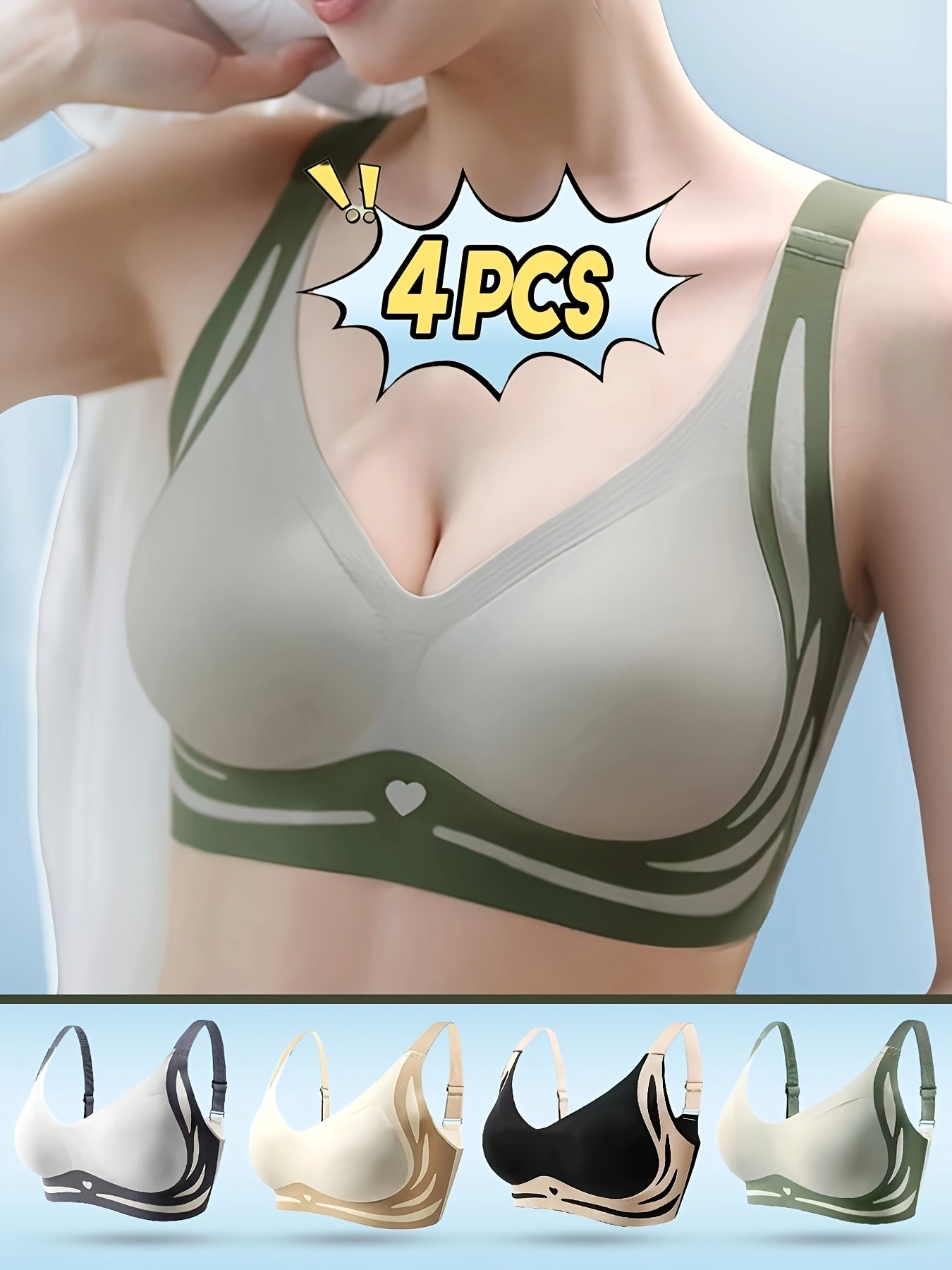 Women's Seamless Geometric Pattern Bra Set with Adjustable Straps Removable Pads