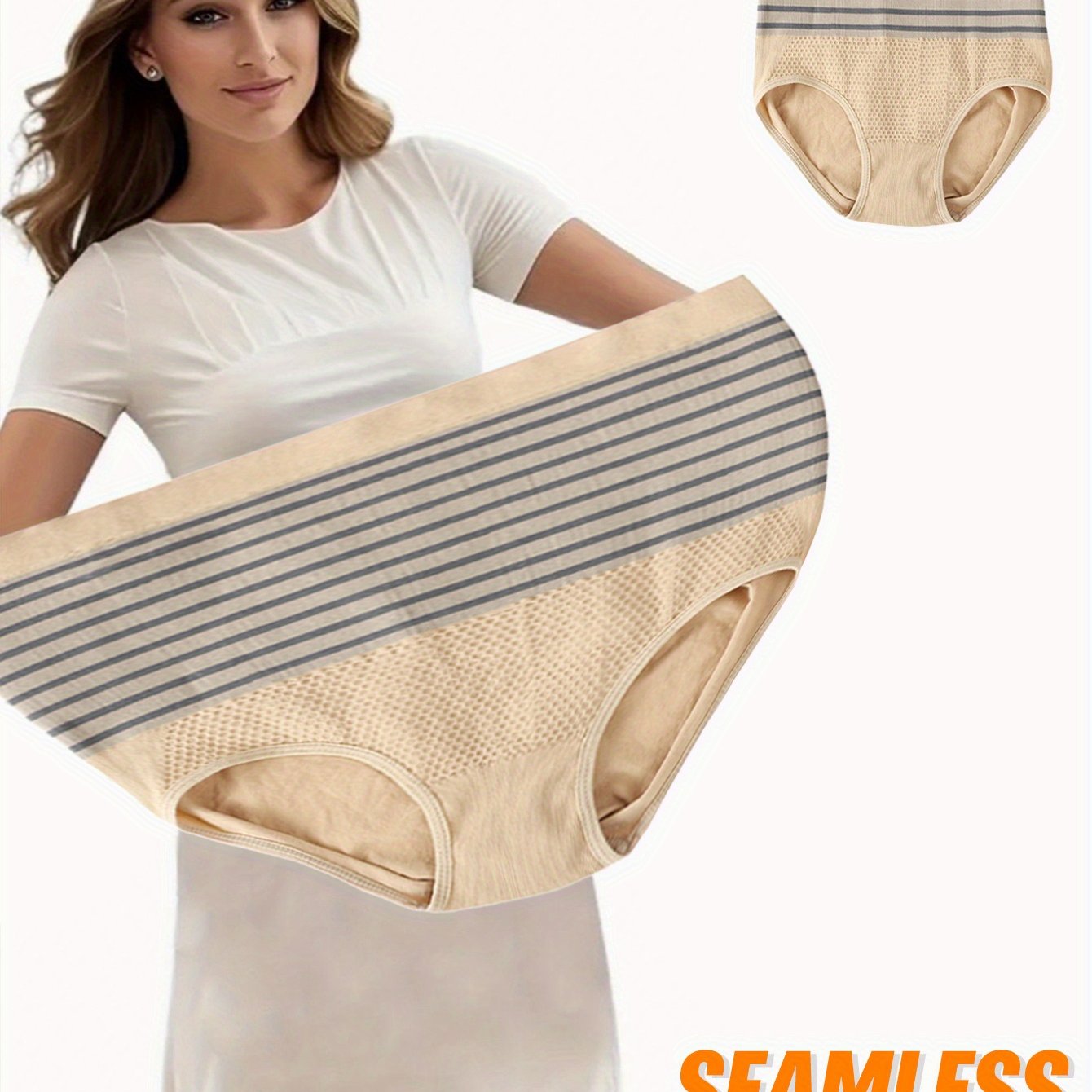 Women's Seamless High-Elasticity Tummy Control Shapewear Panties Beige Blue Striped