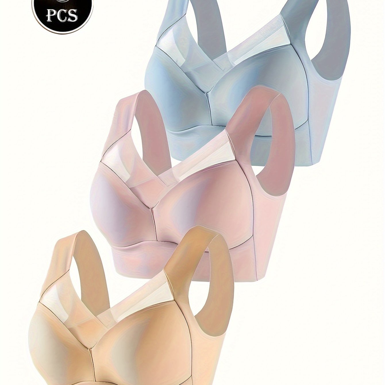 Women's Seamless Sports Bra Set 3 Pack V-Neck Push-Up Medium Support