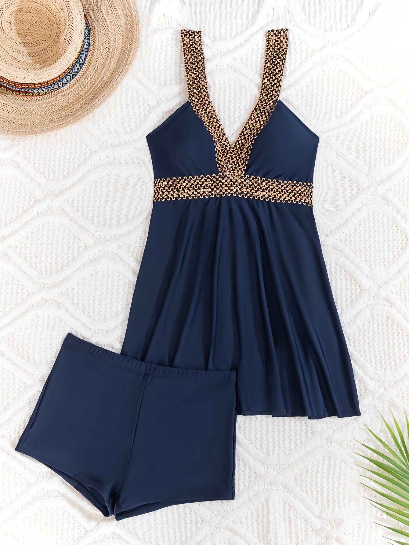 Women's Tankini Set with Slimming Skirt and Gold Chain Accents Swimsuit
