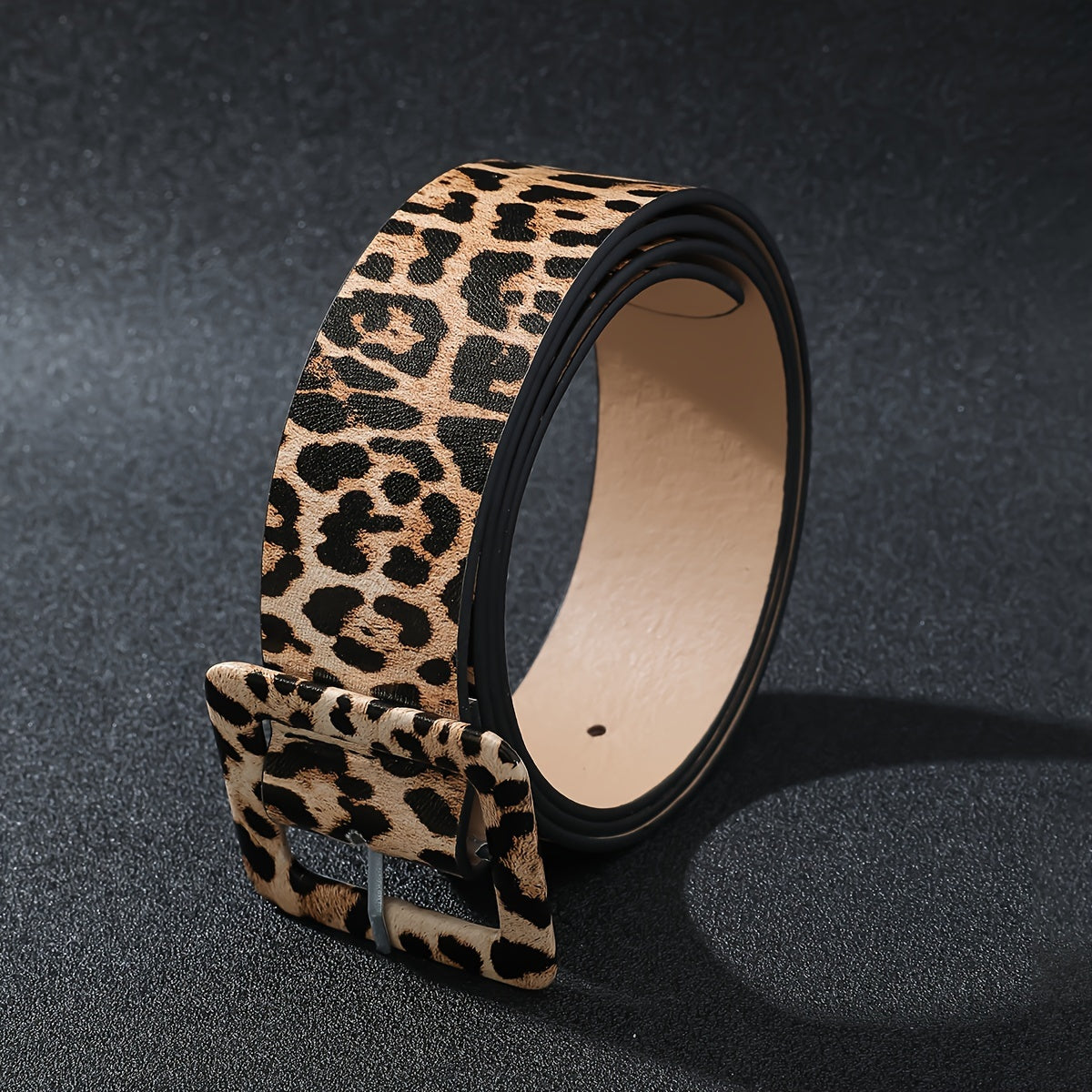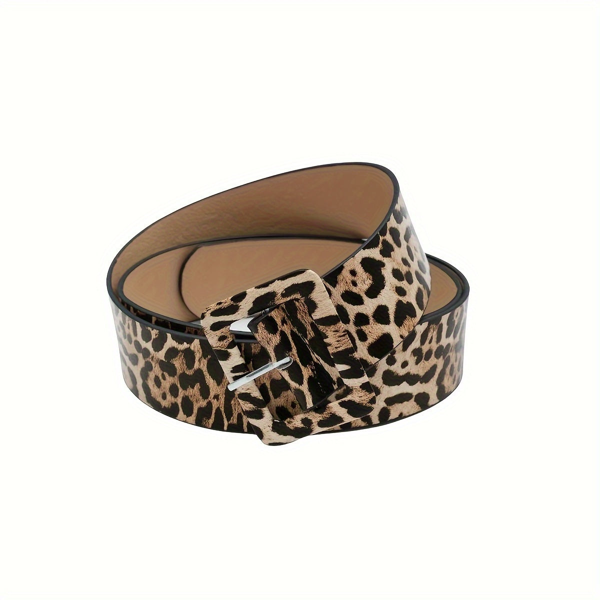 Women's Leather Coat Dress with Square Pin Buckle Leopard Print Vintage Wide Belt