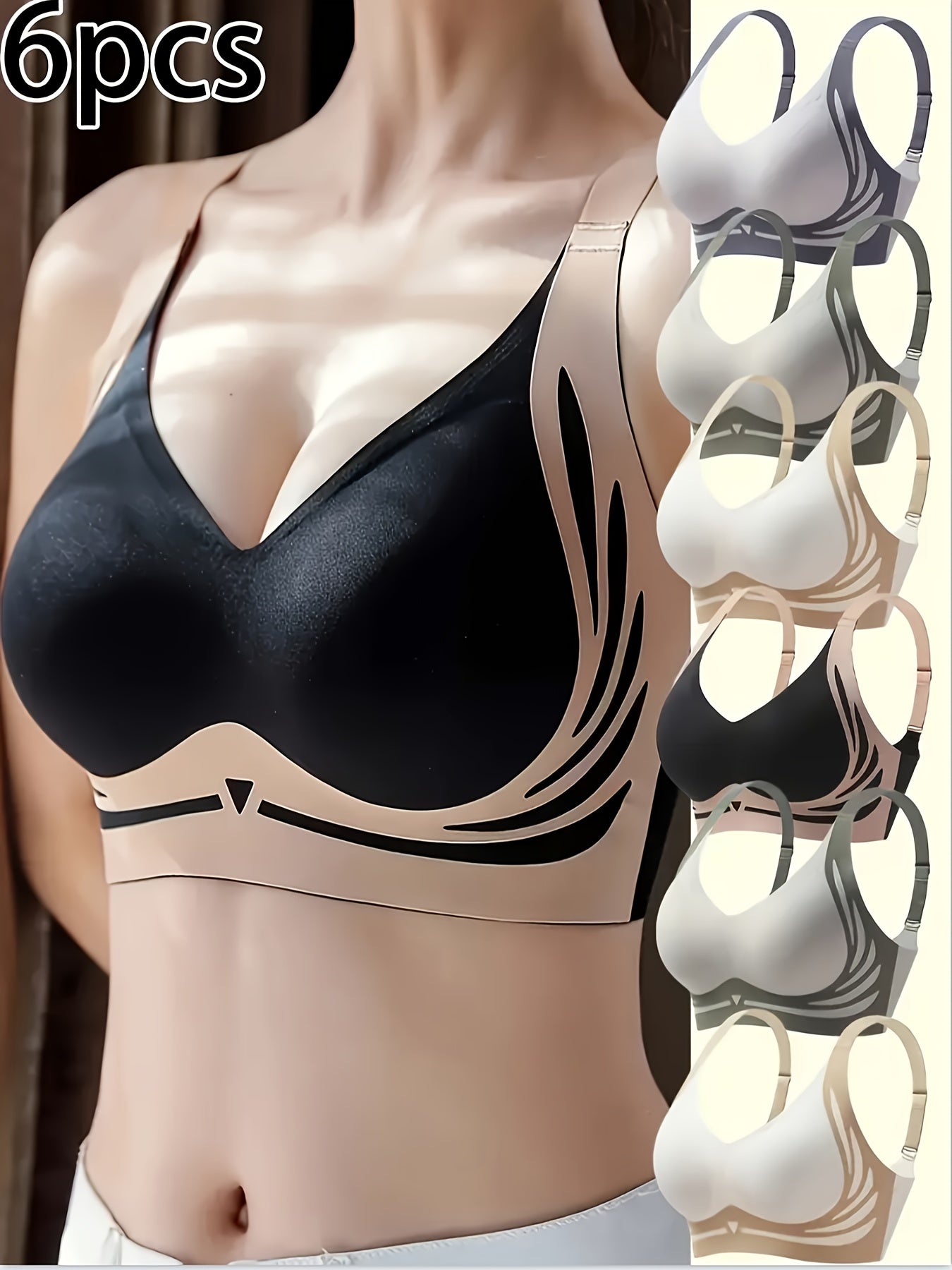 Women Seamless High Support Sports Bras V-Neck Non-Slip Breathable Pack of 6