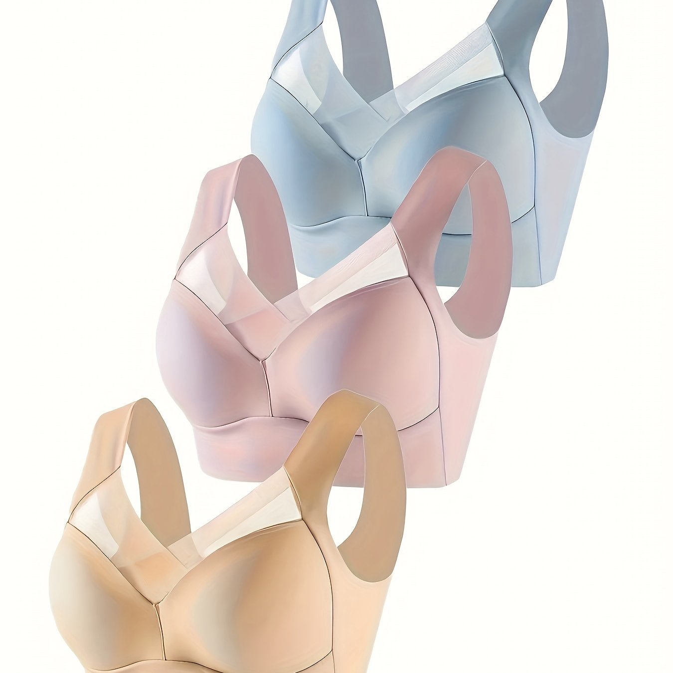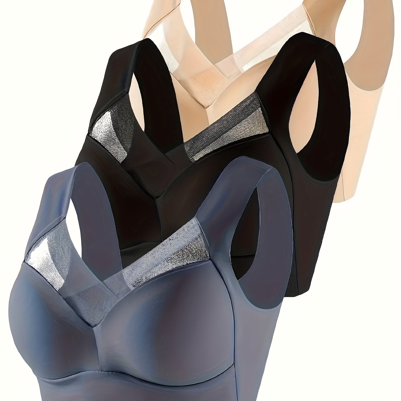 Women Seamless Sports Bras Nylon Blend High Support Breathable Mesh Black Blue Beige 3 Pack