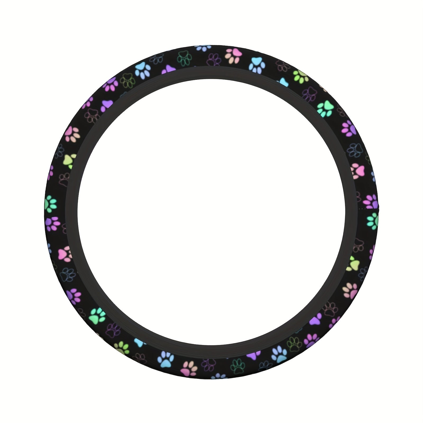 Women Soft Colorful Paw Print Steering Wheel Cover 38.1cm Anti Slip Durable