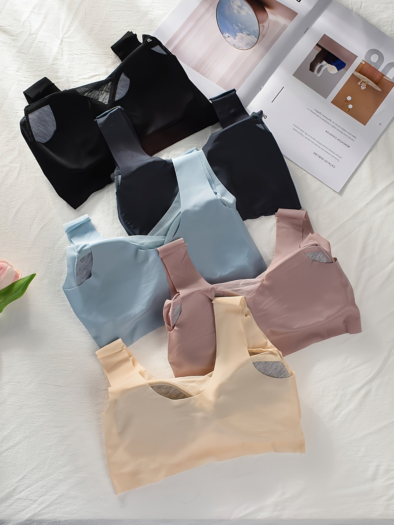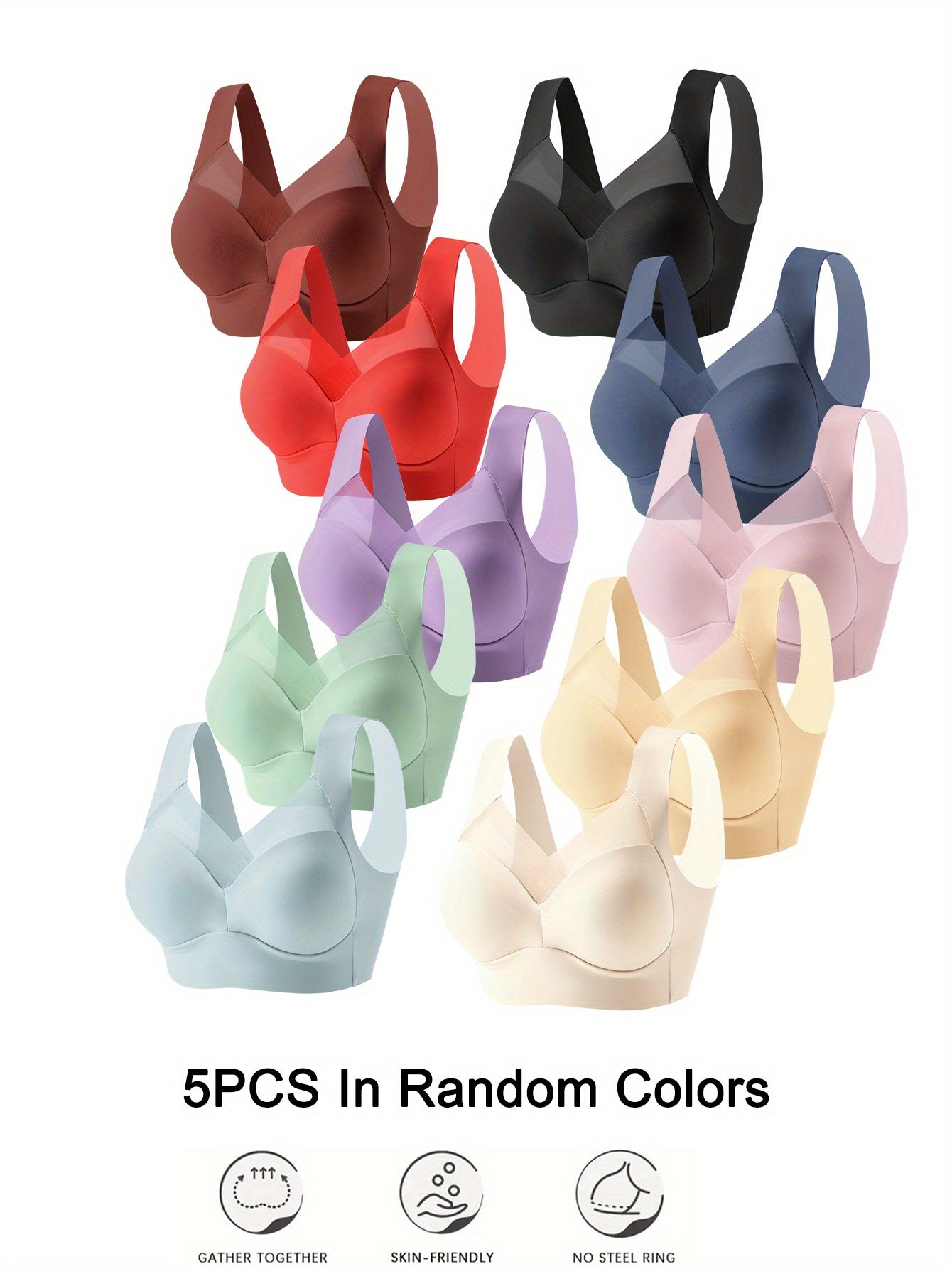 Women Yoga Bras 5 Pack Breathable Mesh Seamless V-Neck No Underwire