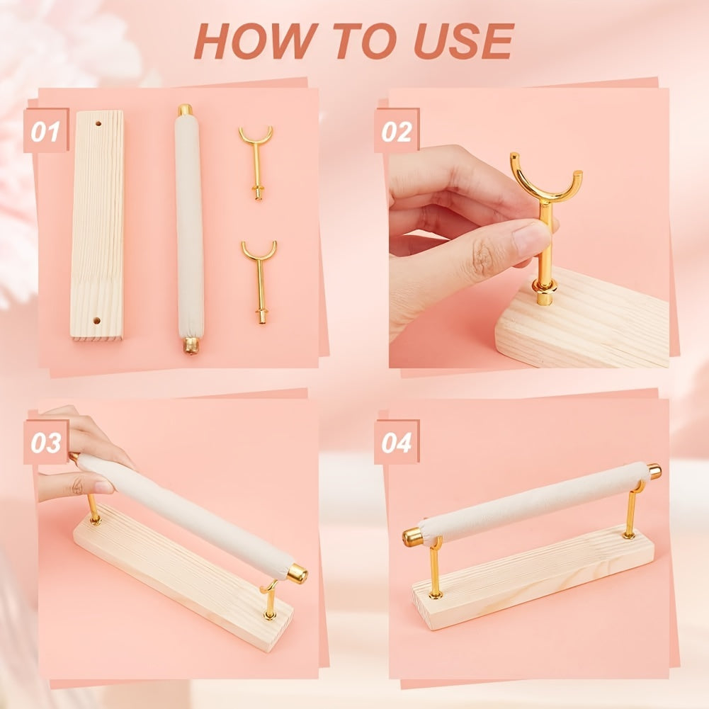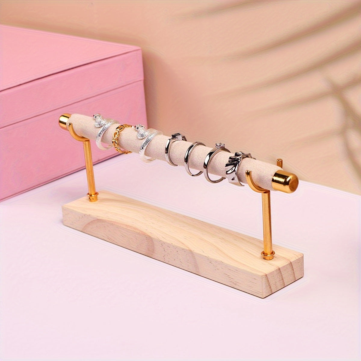 Wooden Jewelry Organizer with Velvet Stripe Ring and Watch Display Stand