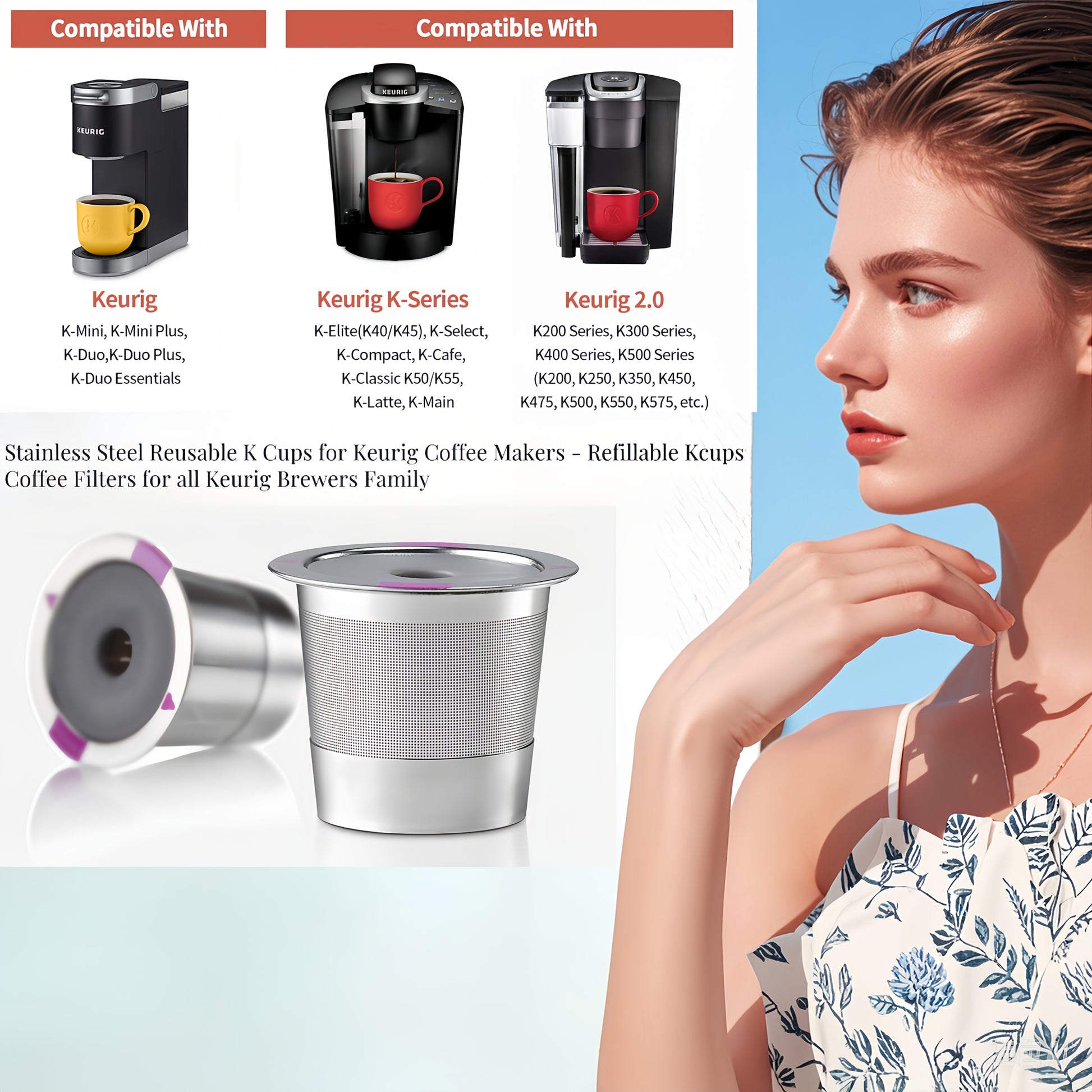 Keurig uchun Gasket bilan 1/2 Paket Qayta ishlatiladigan Stainless Steel Qahva Filtri
