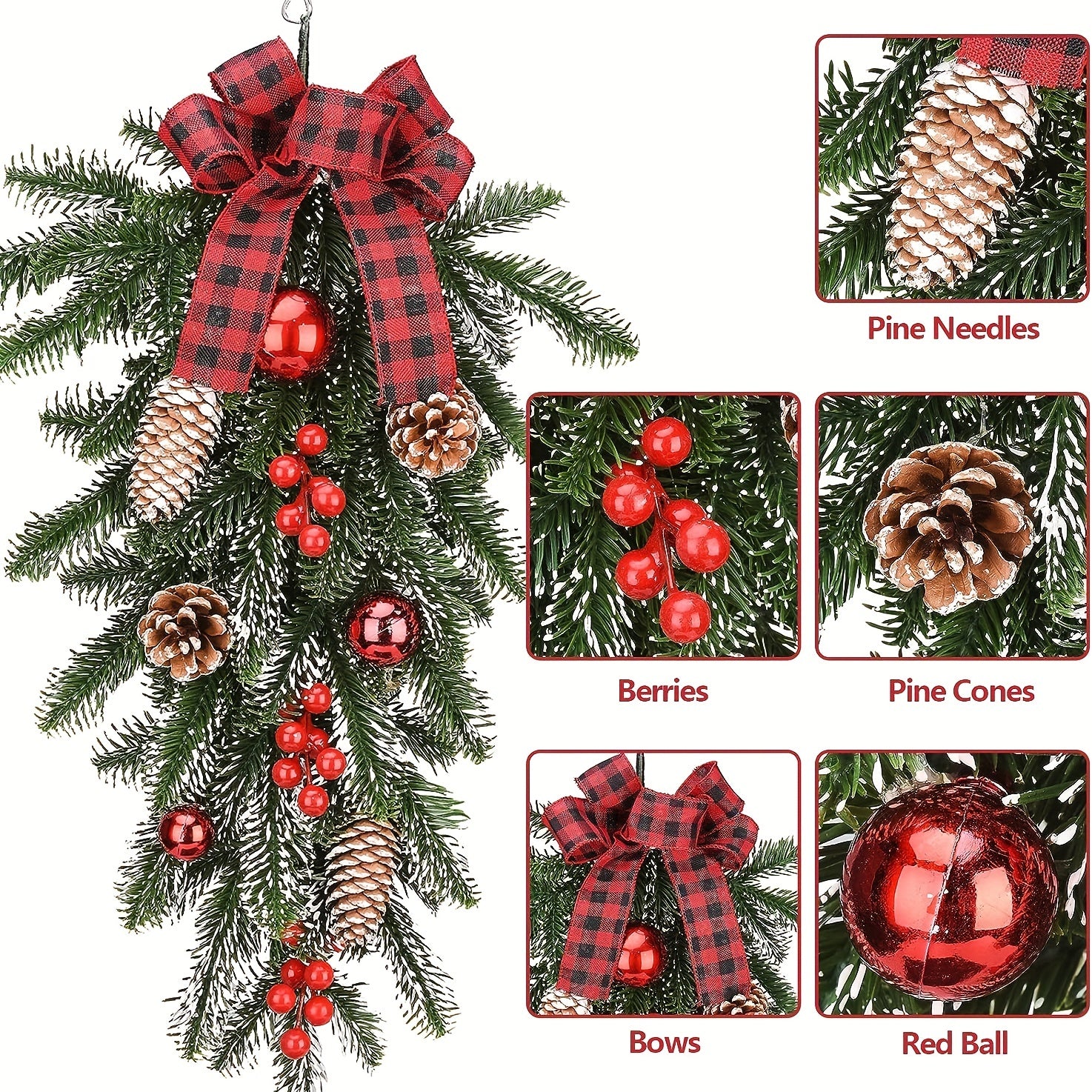 Sun'iy Rojdestvo Tashqi Yulduzcha 54.86 sm Pinoklar Qizil Berries Bayram Dekori