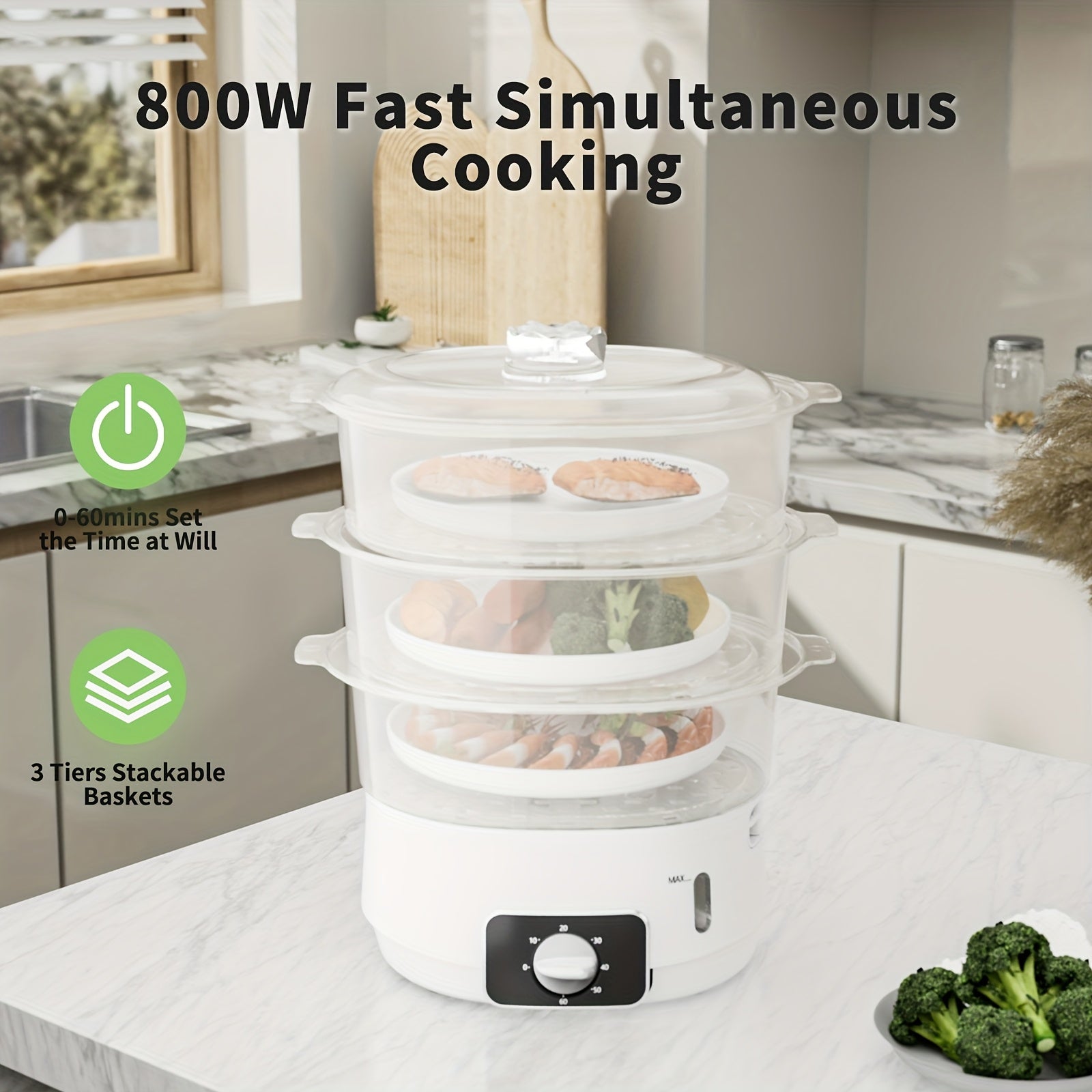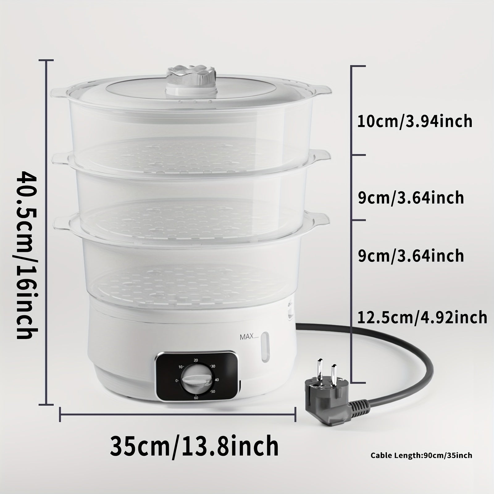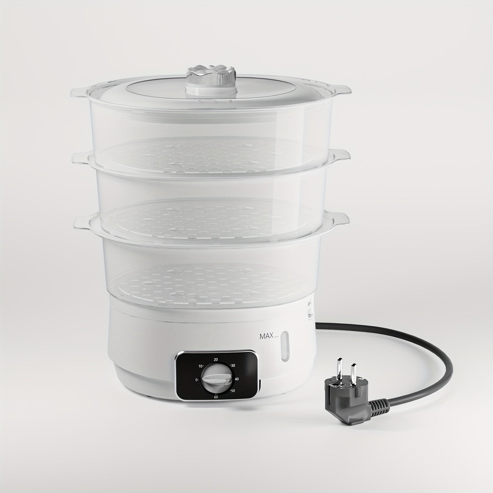 1 EU LIPWEL bug'lamali pech, 13L sig'imli, 800W, 3 ta konteyner, 60 min taymer, 2 ta suv kirish joyi, oq rang, stackable savat. Sabzavotlar, tuxum, guruch va mol go'shtini bug'lash uchun juda yaxshi.