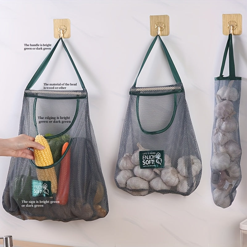 1 Taom saqlash sumkasi, uyda foydalanish uchun, sabzavotlar va mevalarni saqlash uchun mukammal. Zanjabil va sarimsoqni saqlash uchun devorga ham o'rnatilishi mumkin.