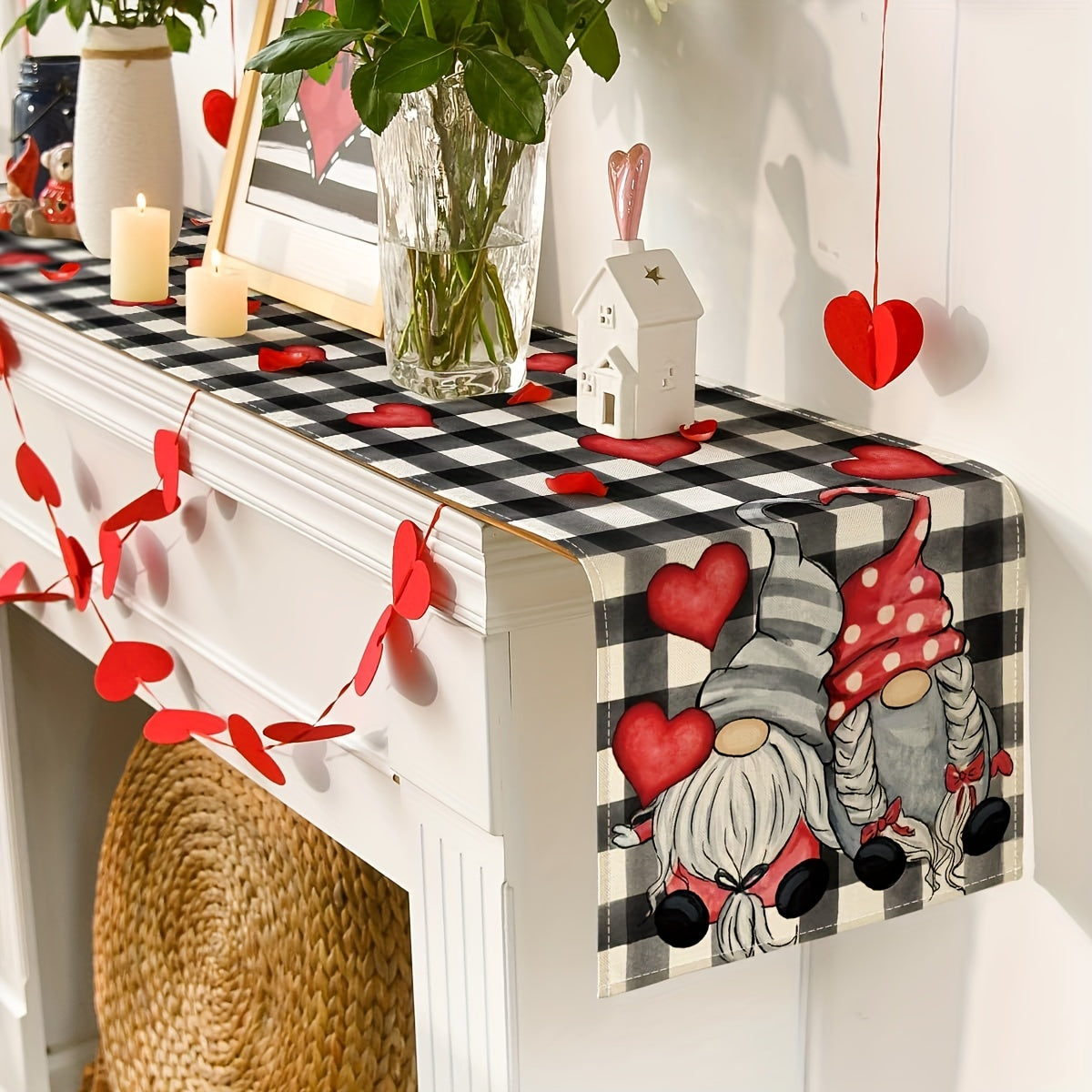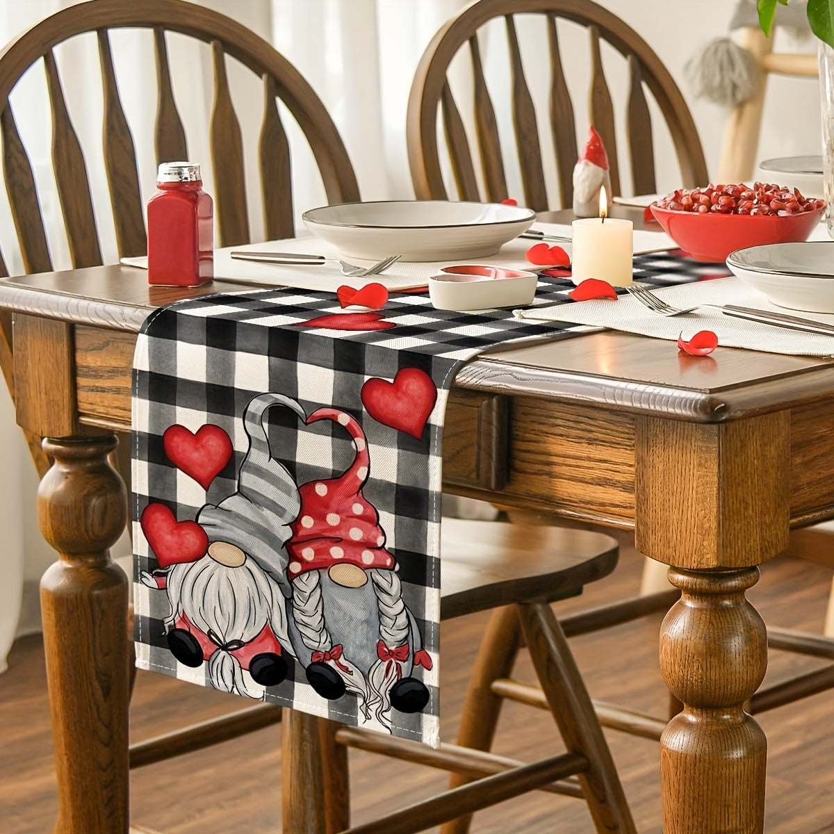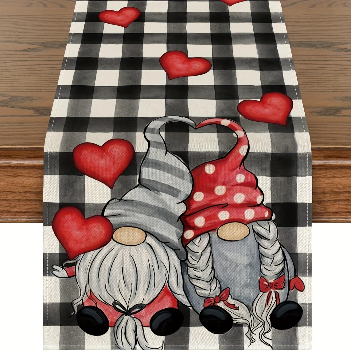 1 Tafta Stol Runi, akvarel Buffalo Plaid yuraklari Gnomlar bilan, Sevishganlar kuni va boshqa maxsus tadbirlar uchun ichki va tashqi joylarda mukammal.