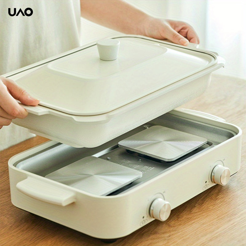 1 dona UAO Multi-Functional Electric Cooking Pot - Oq rangli toʻgʻri burchakli Hot Pot va Grill Combo, Alyuminiy Alloy, 220V-240V bilan EU plagin bilan - Oila yigʻilishlari va turli xil pishirish uchun ideal.