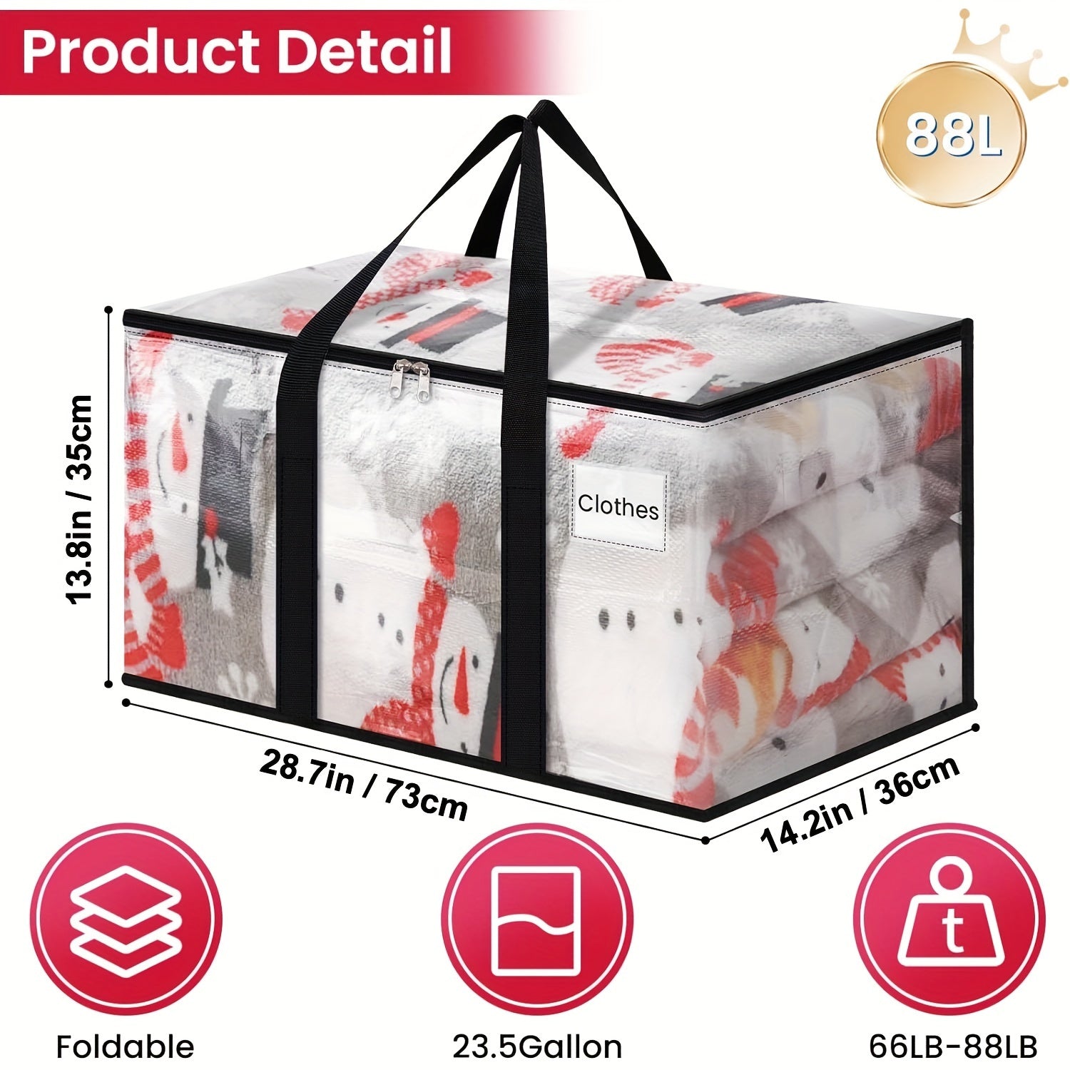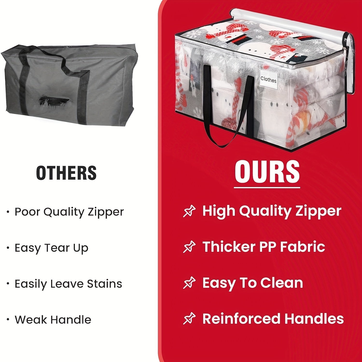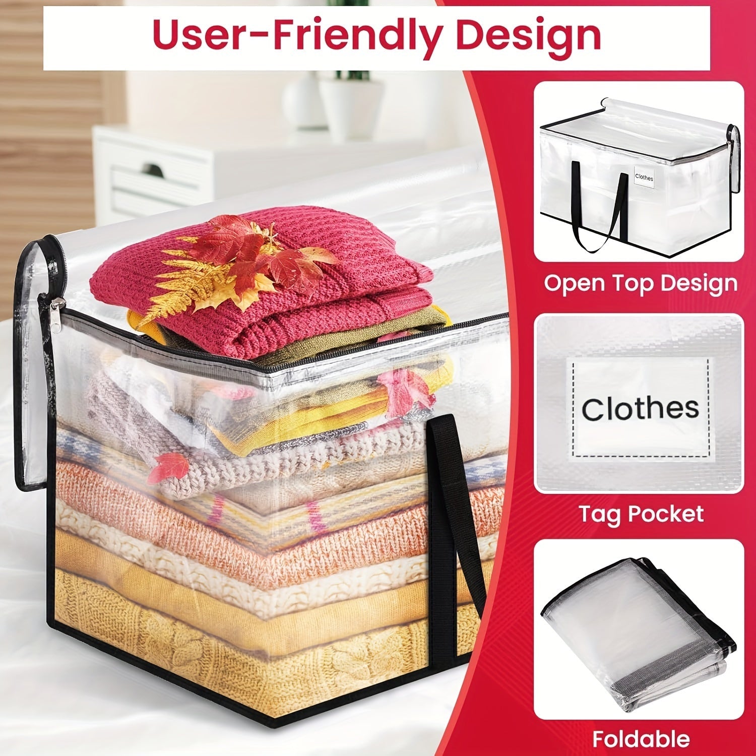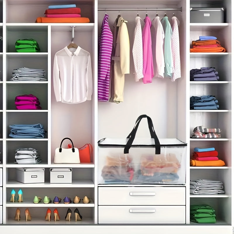 1-dona Og'ir Duty Shaffof Saqlash Sumkasi Mustahkam Zipperlar va Qo'llar bilan - Suv o'tkazmaydigan, Qaytargich Harakat Sumkasi O'rash va Tashkil etish uchun, Yostiq ostida saqlash uchun Qisqa Dizayn