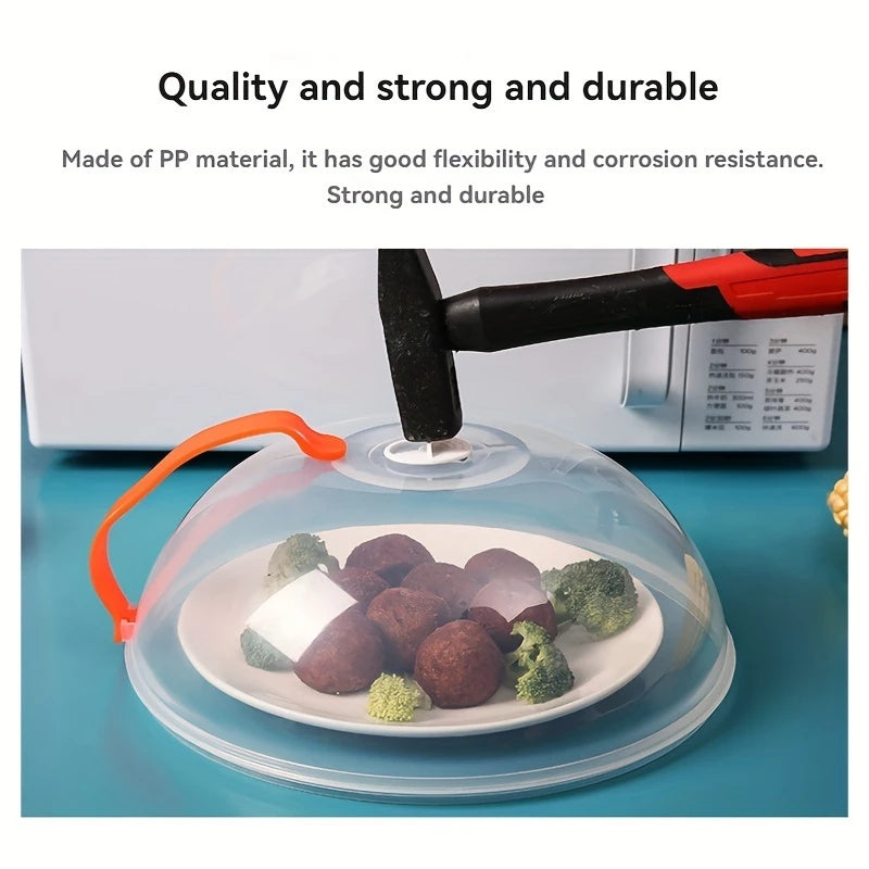 1 dona Mikrotolqinli pech Splash-Proof Cover - Mikrotolqinli pechda xavfsiz pishirish va isitish uchun oq tutqichli shaffof shisha qopqoq. Bardoshli va xavfsiz.
