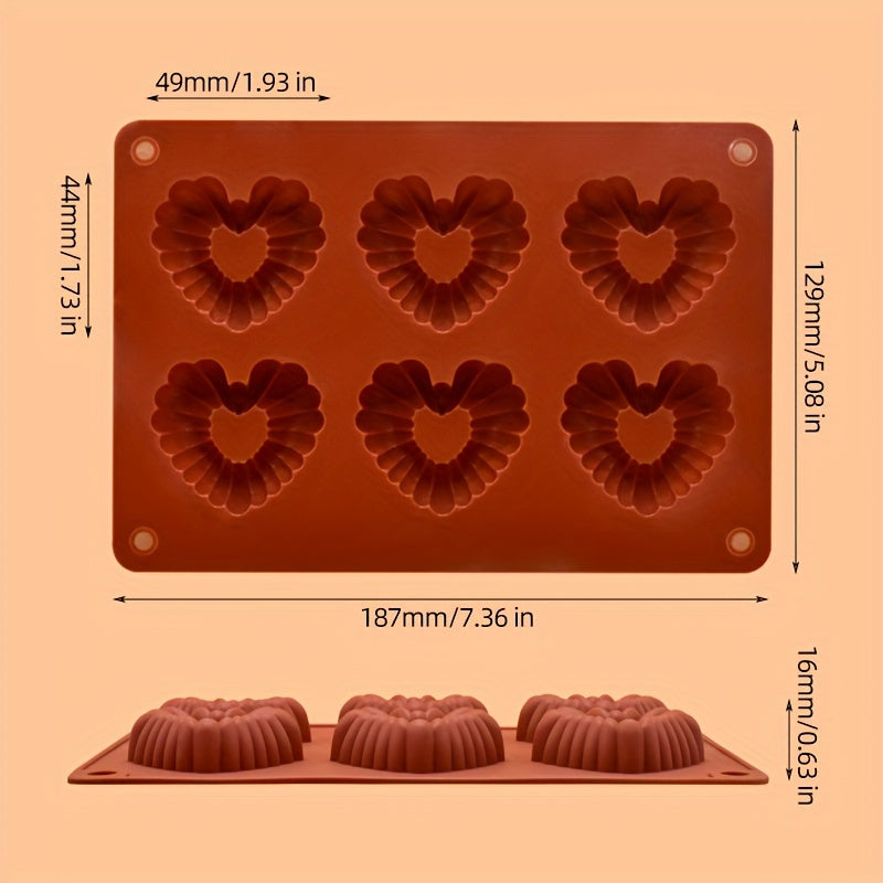 3D Silikon shokolad formasi, 6 bo'shliq bilan, pechenelar va tortlar uchun