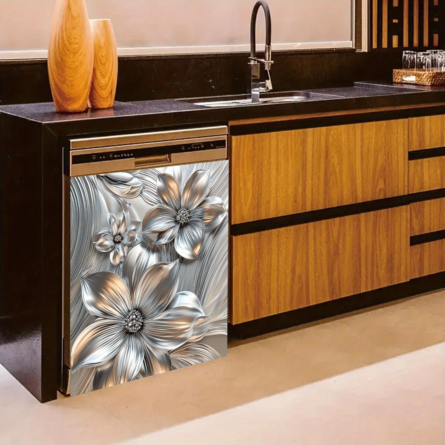 Qozon mashinasi magnit qopqog'i kumush rangli gull bilan, suv o'tkazmaydigan, issiqlikka chidamli, oson tozalanadigan oshxona dekorati uchun stiker