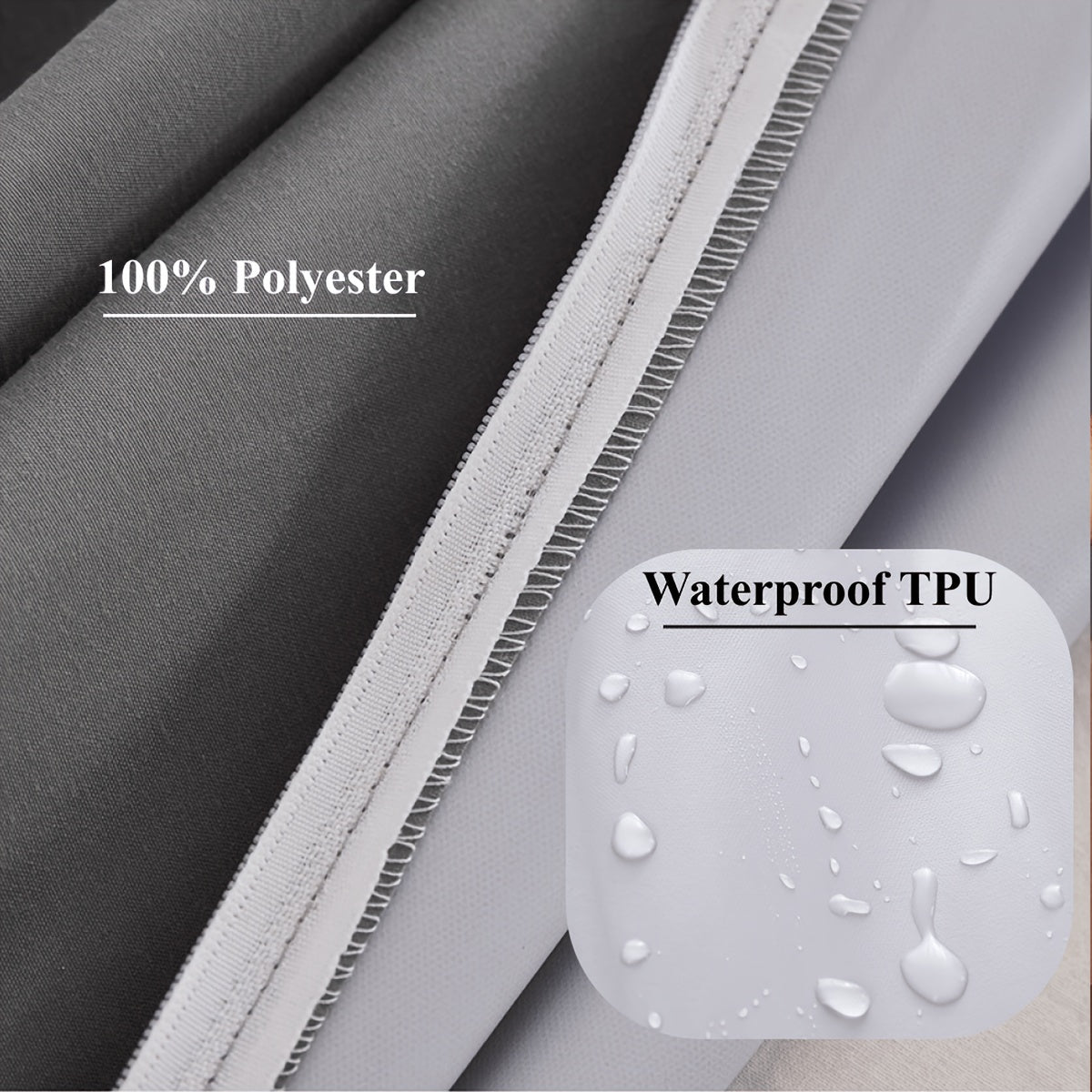 Zipper bilan suv o'tkazmaydigan matras himoyachisi, chuqur cho'ntakli mos keladigan to'shak, juft to'shak uchun, oq yoki kulrang
